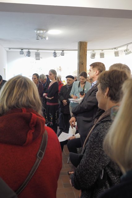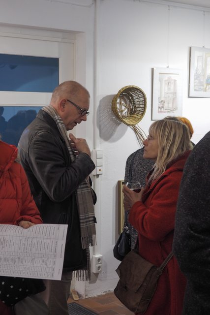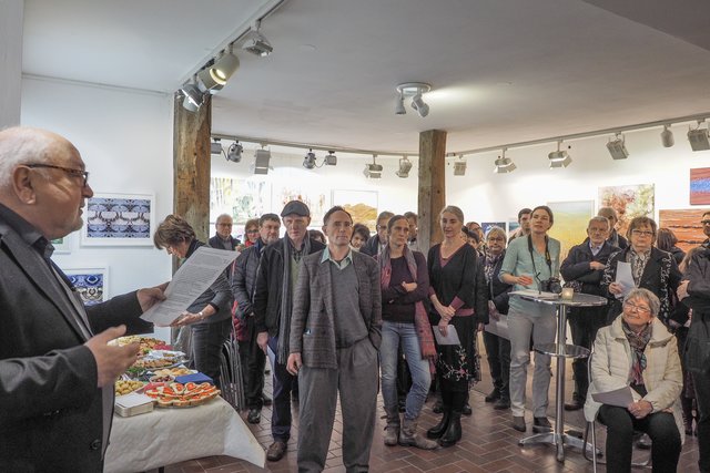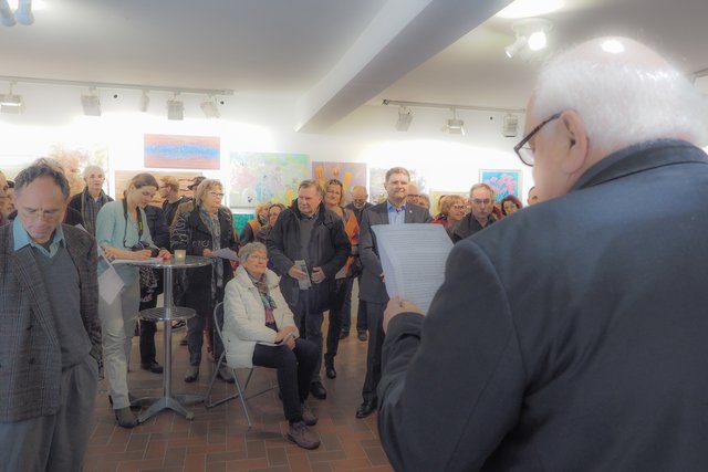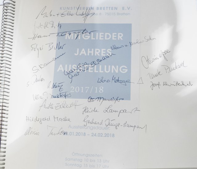 Anlässlich der Vernissage dankte der Kurator und scheidende Vorsitzende Wolfgang Dörenbecher-Vetter seinem langjährigen Team, namentlich der 2. Vorsitzenden Uta Goppelsröder, die nicht nur durch ihre langjährige Tätigkeit als Galeristin bekannt ist, sondern auch durch die Organisation künstlerischer Ausstellungen, die sie etwa zum Melanchthonjubiläum und dem der Stadt Bretten zu veranstalten wusste.
