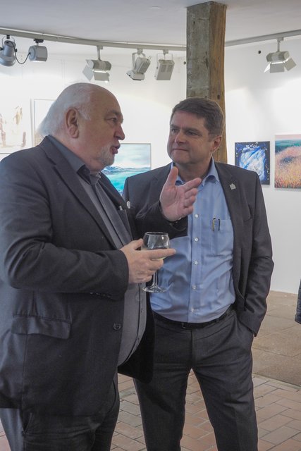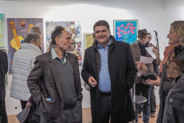 - Alter und neuer Vorsitzender des Kunstvereins Bretten: Wolfgang Dörenbecher-Vetter (links) und Benedikt Forster bei der Stabübergabe im Rahmen der Vernissage zur Mitgliederausstellung.