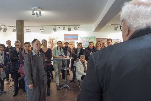 Forster stellte sodann die weiteren Mitglieder des neuen Vorstandes vor: Eleonore von Mossakowski als 2. Vorsitzende, Thomas Lindemann, Schatzmeister und PR, sowie Sibylle Schnauffer als Schriftführerin. Es sei Ziel des neuen Vorstandes, Kunst ins öffentliche Leben der Stadt zu tragen und für alle künstlerischen Aktivitäten einen Ort der Begegnung zu schaffen. Dies gemeinsam mit dem neuen Beirat: Wolfgang Dörenbecher als Hort allen administrativen Wissens, Judith Fritz als Leiterin des Guggemol-Theaters, Bettina Forkel als Leiterin der Ballettschule, Tom Naumann als Verbindungsmann zur Bruchsaler Kunstschule, Helga Essert-Lehn, die in Oberderdingen viele künstlerische Aktivitäten organisiert, Rainer Martus, der seit Jahren die Internetseite der Vereins betreut, und Arndt Stumpf, der den Kunstverein tatkräftig unterstützt. Besonders dankte der neue Vorsitzende Oberbürgermeister Martin Wolff für sein Engagement, das sich etwa in der Städtebegegnung mit Oberkirch zeigte: Der OB von Oberkirch Matthias Braun hatte 2017 Oberkircher Künstler im Brettener Kunstverein präsentiert. Dieses Jahr wird im April der Gegenbesuch des Kunstvereins Bretten zusammen mit Wolff stattfinden. Martin Wolff beschloss die Rednerliste mit der Versicherung, dass ihm die künstlerische Entwicklung der Stadt sehr am Herzen liege und er weiterhin den Kunstverein in seinen Aufgaben unterstützen wolle und sich auf die Zusammenarbeit freue.