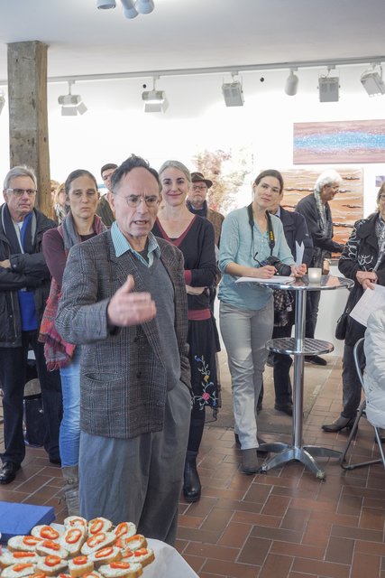 Er dankte Marlies Sohn, die sich im Hintergrund über lange Jahre für den Kunstverein engagierte, sowie Kassier Dieter Rossnagel. Er gab seiner Freude Ausdruck, dass sich eine neue Mannschaft gefunden hat, die den Kunstverein weiterführen wird, und übergab an den neuen Vorsitzenden. Benedikt Forster schloss sich dem Dank an die scheidende Mannschaft an und dankte auch den Mitgliedern des Kunstvereins, die mit Speis und Trank den Abend zu einem kleinen Fest zu Ehren des scheidenden Vorstands werden ließen. Besonders freue er sich, dass alle scheidenden Vorstandsmitglieder weiter aktiv im Kunstverein mitwirken wollen.