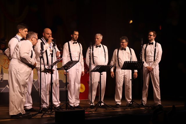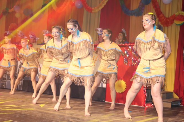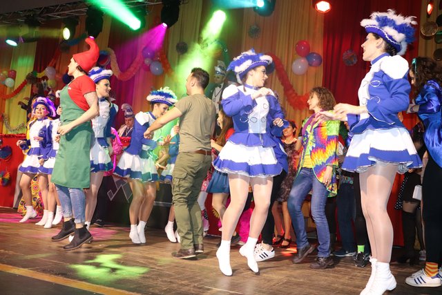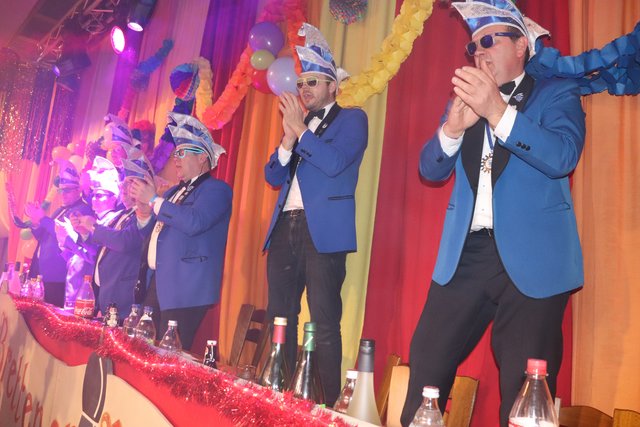 Heiteres Liederraten mit direktem Bezug zu Merkel, Trump und Erdogan boten die Brettener Hofsänger, die Gardemädels legten einen fetzigen Indianertanz aufs Parkett, abgeschlossen wurde der kurzweilige Abend durch ein Michael Jackson-Medley vom Elferratsballett.
