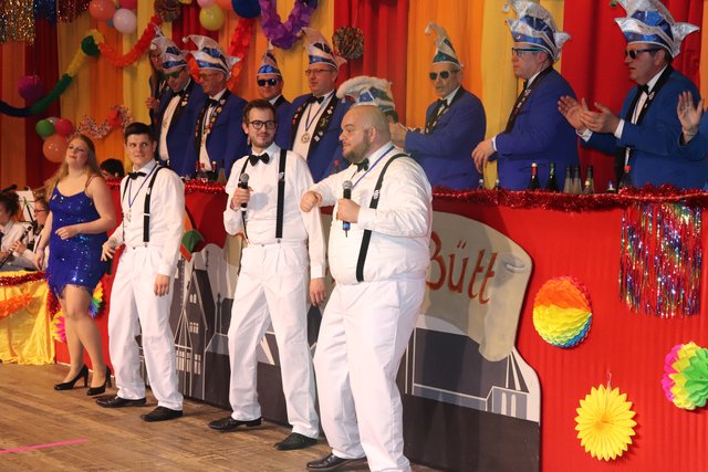 Rund viereinhalb Stunden Humor in bester badischer Mundart erwartete die rund 440 Besucher am Samstagabend, 2. März, in der Brettener Stadtparkhalle. Punkt 19.01 Uhr wurde die nunmehr 47. Brettener Bütt durch ein Selfie mit dem Publikum eröffnet: Präsident Bernd Neuschl betätigte den Auslöser und der Humor-Marathon quer durch die Welt der Kommunal- und Globalpolitik war eröffnet. Dort wird im Übrigen viel geredet, wenig gelacht und nicht immer die Wahrheit gesagt. Bei der Bütt sind dagegen sämtliche zwerchfellerschütternden Grenzen weit geöffnet. Gleich zweimal gab es Neuschl an dem Abend zu sehen: Als Übermittler des längst vergessenen deutschen Liedgutes in neuer Interpretation – Ben Flop, Professor für Flopmusik von der Flop-Akademie in Mannheim sowie als bayerischer Nudelhuber, ein krachlederner Urtyp mit eingebautem Humor-Dampfhammer. Dieser zog sofort vom Leder, etwa gegen die Senioren: „Prügeln sich zwei Rentner, dann fliegen die Dritten.“ Oder gegen Annegret Kramp-Karrenbauer, kurz auch AKK genannt, die seiner Meinung nach nicht Frederike heißen sollte, da sich hieraus sonst ein höchst skurriles Namenskürzel ergeben könnte.