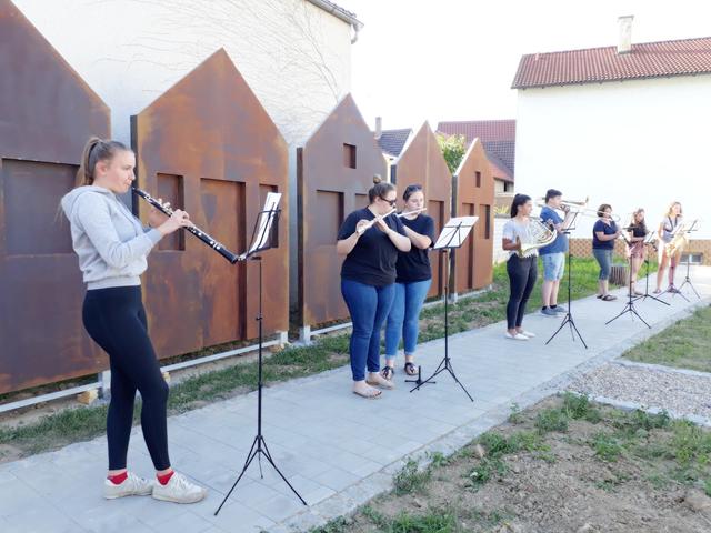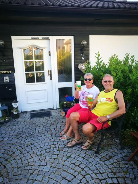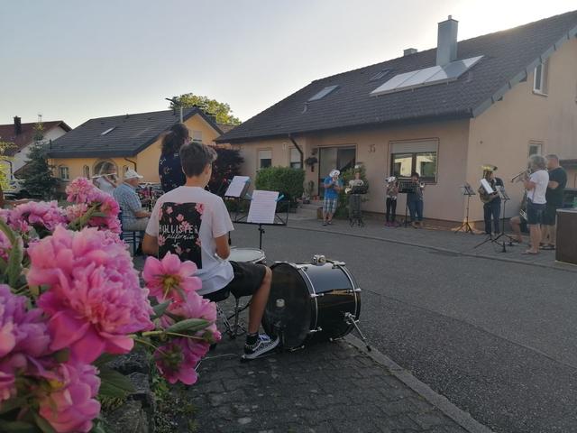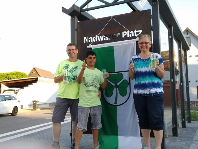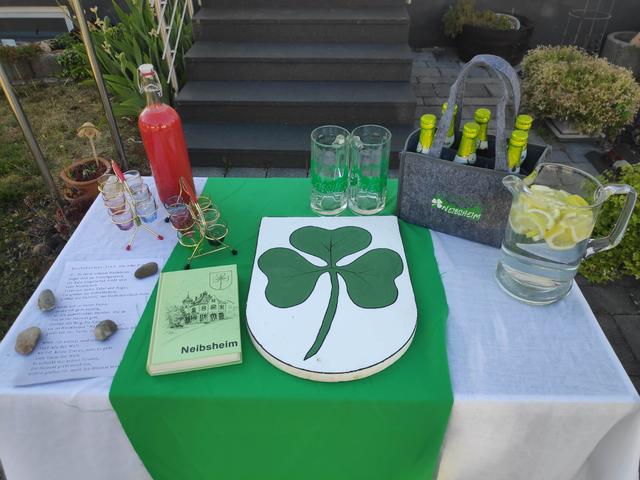 Viele hatten die frisch eingetroffenen Neibsheimer Fahnen aufgehängt, so dass das Dorf in Grün-Weiß erstrahlte. An einigen Stellen im Dorf spielten zum Auftakt, als es vom Kirchturm 19.15 Uhr schlägt, Mitglieder des Musikvereins das Neibsheimer Lied sowie Beschwingtes und Fröhliches. Auch am neu gestalteten Nadwarer Platz, der eigentlich am Festwochenende hätte eingeweiht werden sollen, erklang Musik. Geburtstagsgrüße kamen aus der Region und auch von weiter her, wie etwa vom Chiemsee und auch aus der Partnergemeinde Neuflize in Frankreich.