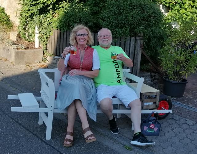 Auf den 1. Juni 770 ist der Eintrag im Lorscher Codex datiert, daher sollte am Pfingstwochenende das Jubiläum mit Gottesdienst, Festumzug, Live-Musik und buntem Programm besonders groß gefeiert werden. Coronabedingt musste alles abgesagt werden. Doch schon seit April begeht der Ort immer am ersten Montag im Monat sein virtuelles Brunnenviertel. Statt sich tatsächlich am Brunnen auf dem Dorfplatz zu treffen, nutzt man die moderne Technik und stößt seither im Internet miteinander an: Über die über 200 Teilnehmer zählende WhatsApp-Gruppe sowie auf Facebook gehen Fotos und herzliche Grüße hin und her. Doch nicht nur das: Viele nehmen vor ihrem Haus Platz und kommen so - mit angemessenem Abstand - mit Nachbarn und Freunden ins Gespräch. So auch am 1. Juni.