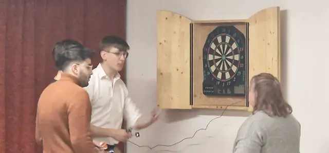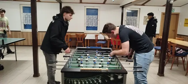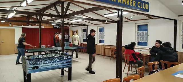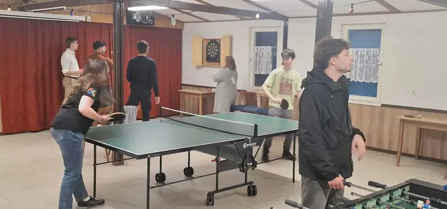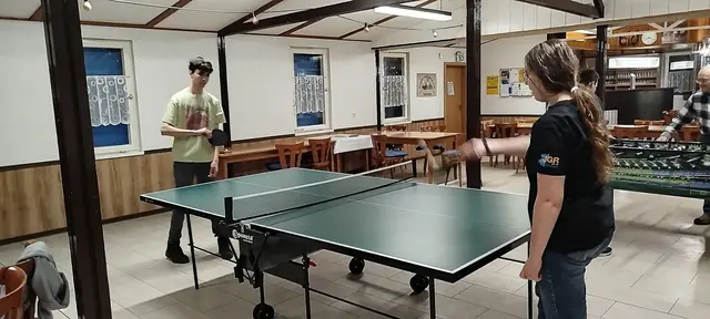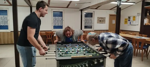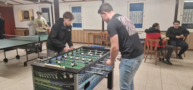 Dazwischen wurde in lockerer Runde Darts, Tischtennis und Tischkicker gespielt.