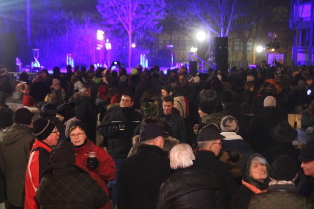 Um das leibliche Wohl der Gäste kümmerten sich außerdem Ziegeler Events mit leckeren Longdrinks und Rudi Schleicher mit heissen Speisen und Getränken, sowie die Metzgerei Gropp am Grill. Bereits vor Mitternacht füllten die Besucherströme den Platz vor dem Rathaus vollständig aus und mussten reguliert werden. Die klirrende Kälte und das Gedränge trübten die ausgelassene Stimmung aber nicht, um Mitternacht erfüllte der Jubel den Platz, in Begleitung des Feuerwerks beglückwünschten sich die Gäste und stießen auf das beginnende Jubiläumsjahr 2017 an.