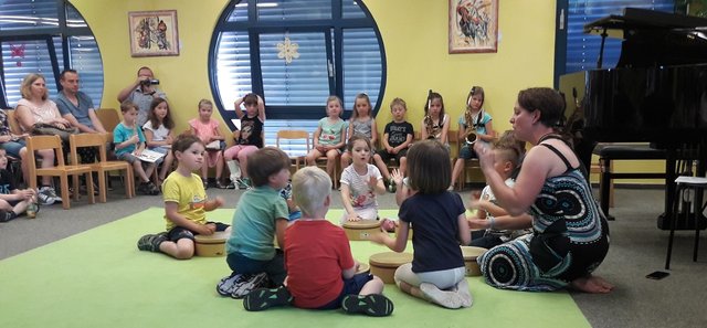 Um 14.00 Uhr fanden sich wieder neue Besucher ein, die zum Grundstufen-Vorspiel der Früherziehungskinder und jungen Instrumentalschüler gekommen waren. Eine gelungene und auch sehr abwechslungsreiche Vorstellung mit vielen verschiedenen Instrumenten und Klangfarben!