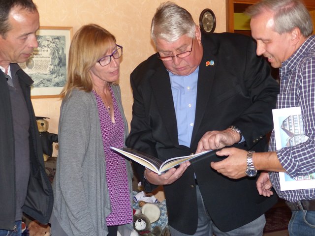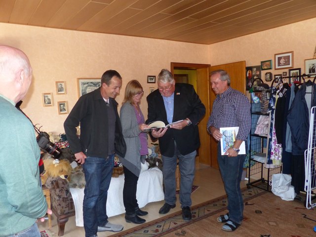 Gerhard Rinderspacher erläuterte die räumliche und historische Situation von Dürrenbüchig aus der Zeit von 1854, in der die Vorfahren der Amerikanerin in die Staaten ausgewandert waren. Höhepunkt war dann die „Einkehr“ im ehemaligen Ochsen in der Dürrenbüchiger Strasse 43. Hier wurde Mrs. Johnson ein herzlicher Empfang von den Familien Fahrer und Kiefer als „Verwandte“ bereitet. Thomas Fahrer hatte sich intensiv um die genealogische Seite der Auswanderung aus seiner Sicht gewidmet. Ortsvorsteher Wolfgang Six überbrachte die Grüße des Ortschaftsrates und überreichte ein Fotobuch von Dürrenbüchig und einen Bildband von Bretten im Auftrag von Oberbürgermeister Wolff. Mit viel Material, Bildern und noch mehr positiven Begegnungen und Gesprächen trat Mrs. Johnson dann am Abend ihre Rückreise nach Gengenbach an.