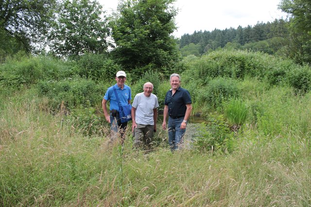 - "Die Drei vom Nabu" (von links): Martin Alb, Gerhard Fritz und Bernd Diernberger vor dem neu angelegten Teich im Biotop Jeremias im Sprantaler Tal. swiz