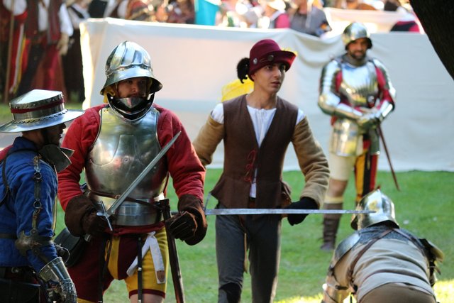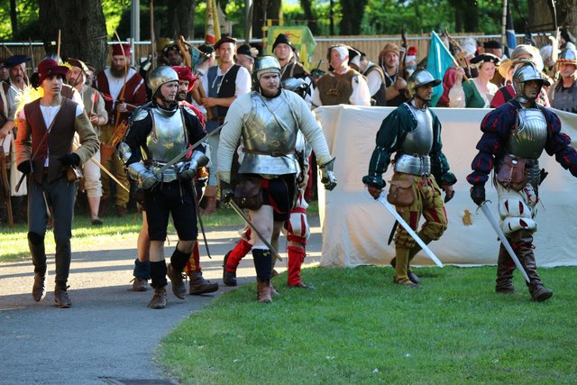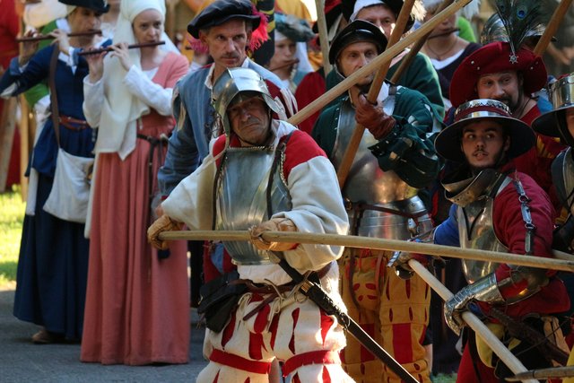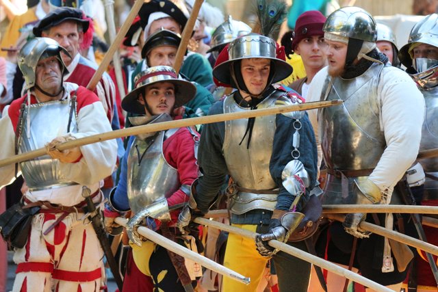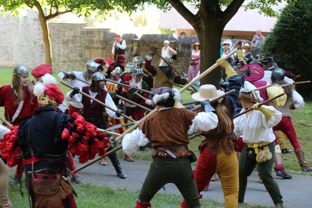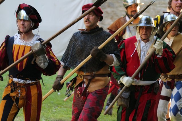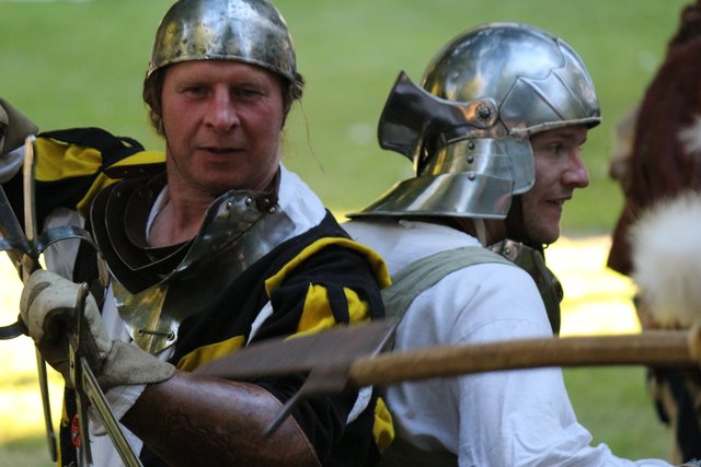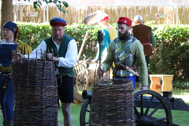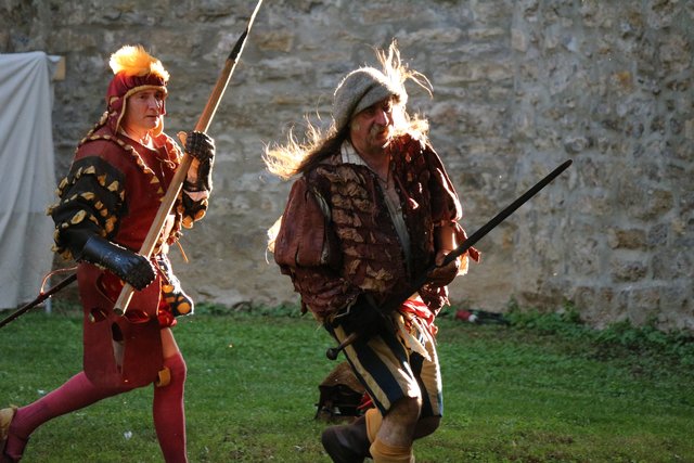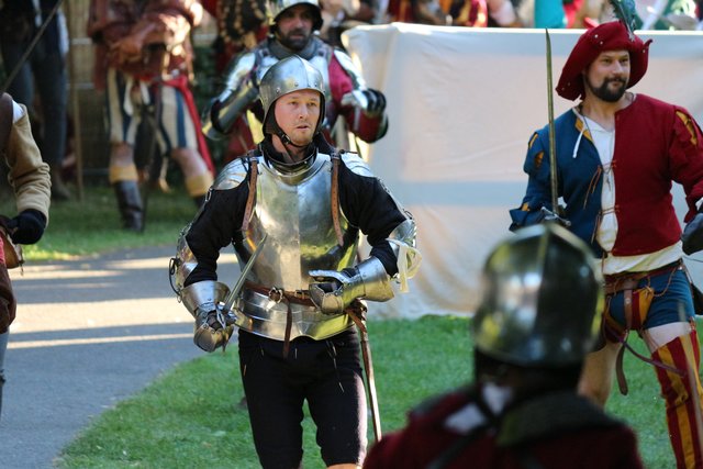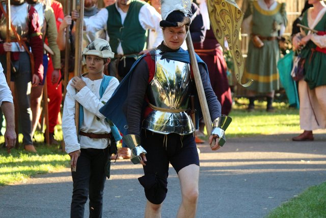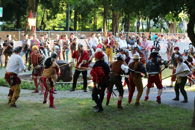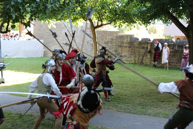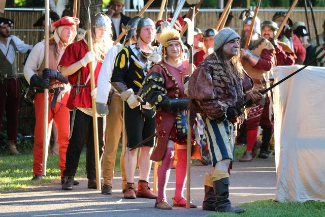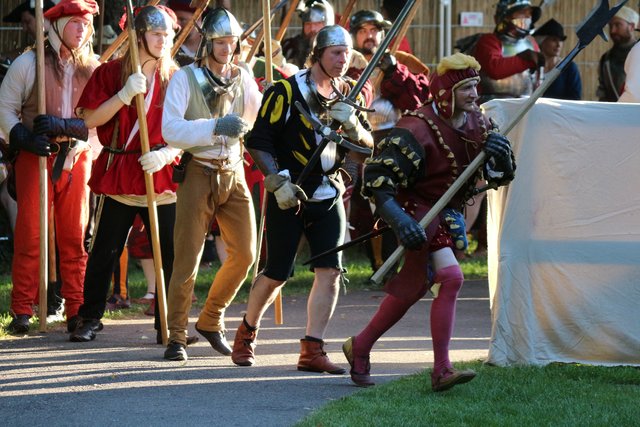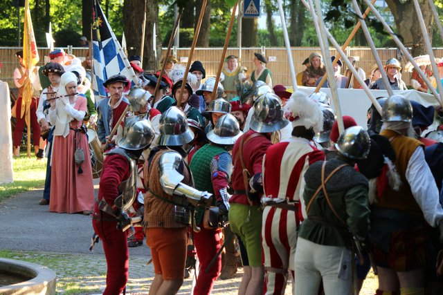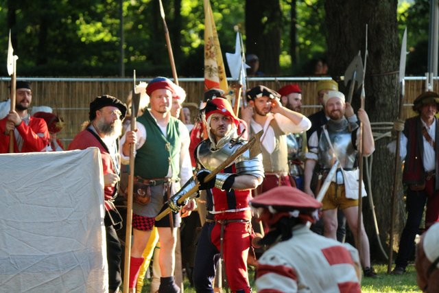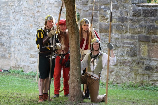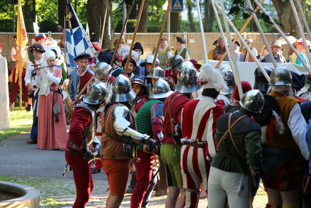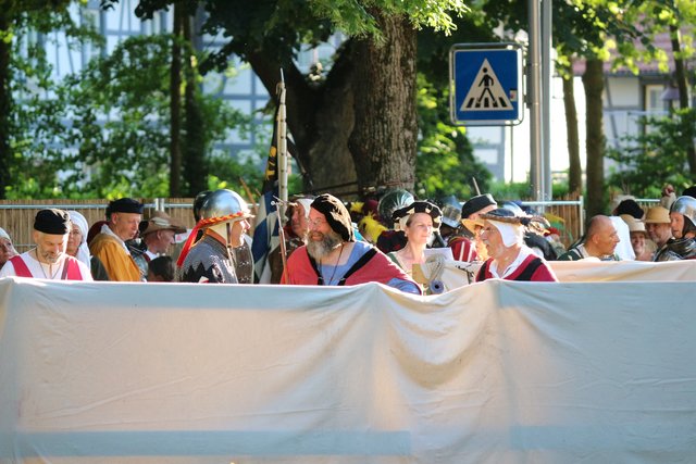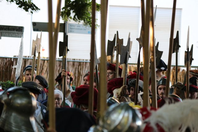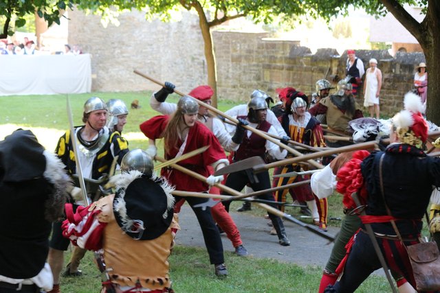 Ein Erzähler hält das Volk auf dem Laufenden über die dargestellten Szenen, deren Ablauf auf der Chronik des Georg Schwartzerdt über die Ereignisse im Jahre 1504 basiert. Doch mehr verraten wir an dieser Stelle nicht, denn die offizielle „Schlacht um Brettheim“ findet dann am Samstag, 29. Juli, statt. Wer sich also für Waffen, Kampf und Pulverdampf und eine unterhaltsame Show interessiert, sollte sich pünktlich um 18.30 Uhr zum Simmelturm begeben.