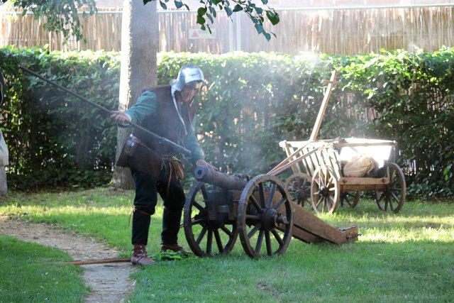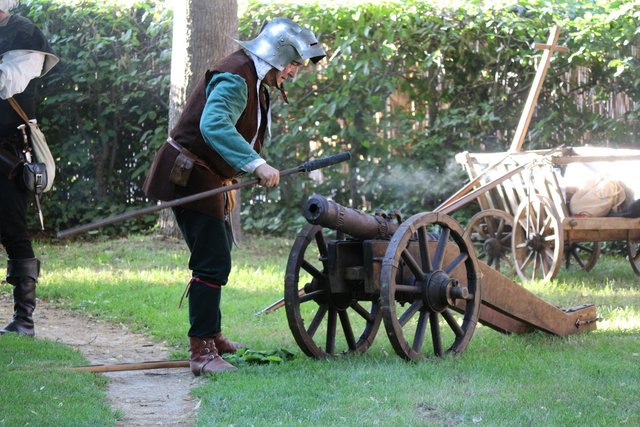 Bretten (kn) Die Regie gab das Zeichen und ein ohrenbetäubendes Kanonenfeuer läutete das Spektakel ein, das seinesgleichen sucht: Am Freitagabend fand am Simmelturm die Probe zur Inszenierung der „Schlacht um Brettheim“ statt. Dabei sieht man, wie sich das kurpfälzische Brettheim gegen die Belagerung der Truppen des Herzogs Ulrich von Württemberg erfolgreich wehrt. Ganz authentisch mit historischen Waffen, Pulverdampf und Hauen und Stechen. Aber auch abseits des Schlachtgetümmels gab es einiges zu sehen, wie das Ausbrennen der Wunden der Verletzten.