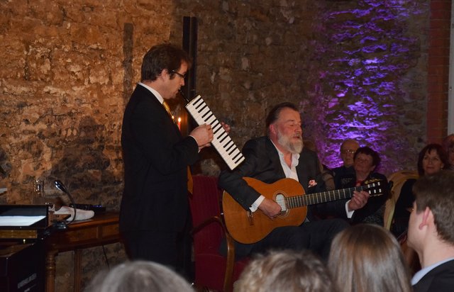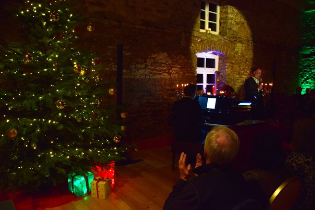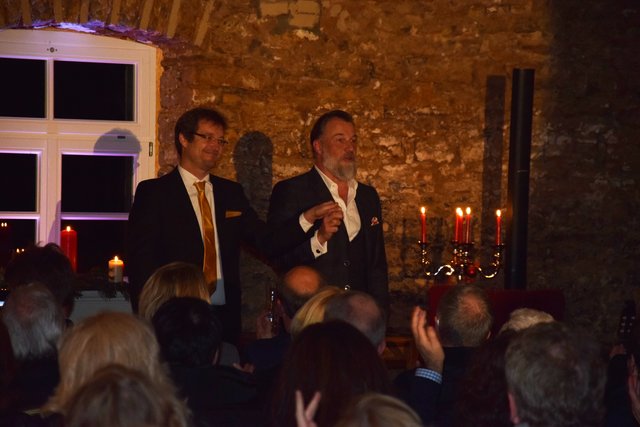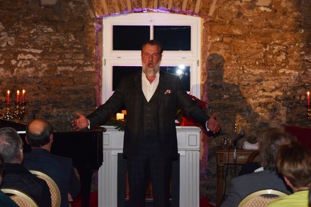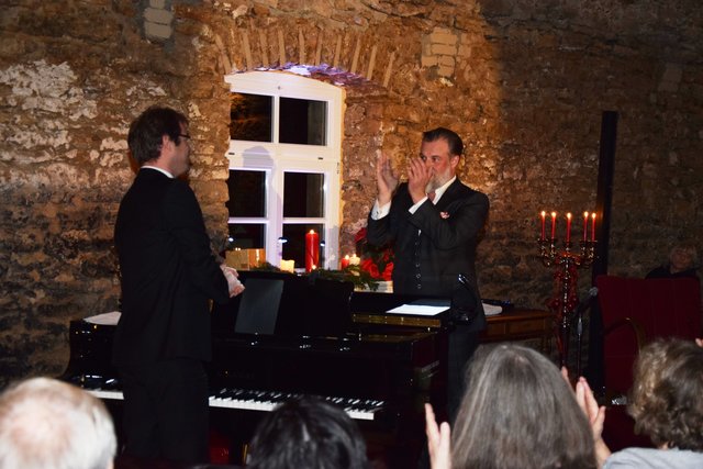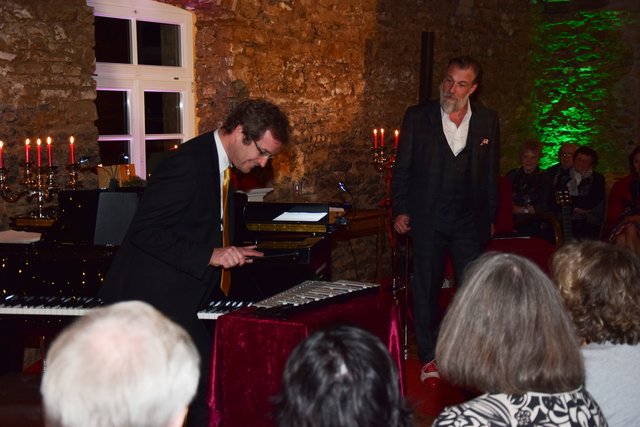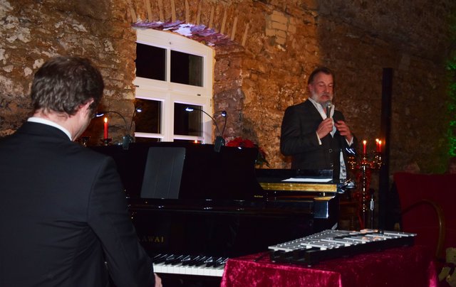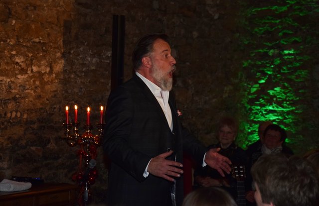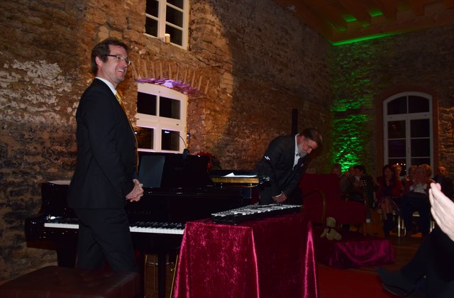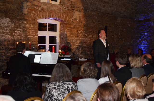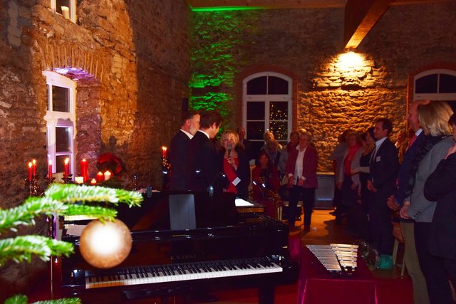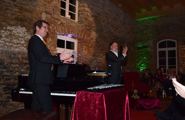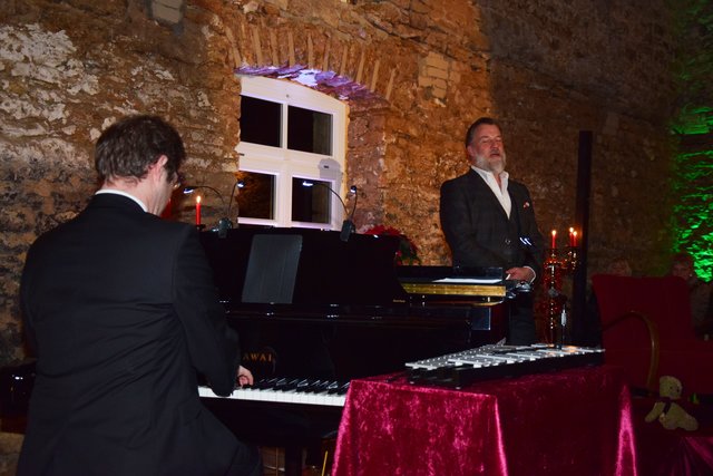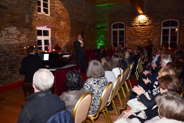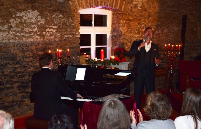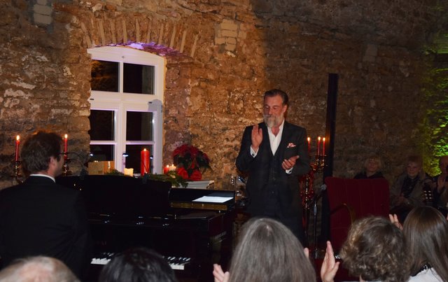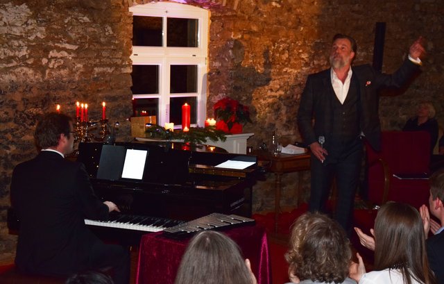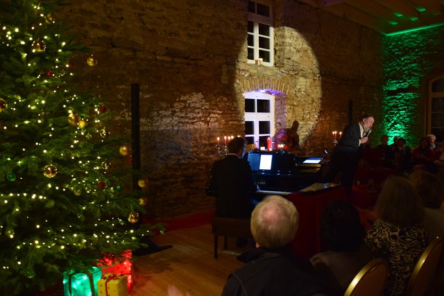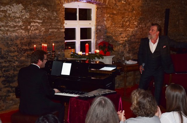 Bretten (swiz/ch) Ein wunderschön dekorierter Saal, ein beeindruckender Sänger und ein begnadeter Pianist waren das Erfolgsrezept für ein außergewöhnliches Weihnachtskonzert der Brettener Woche und der Stadt Bretten im großen Saal von Gut Schwarzerdhof. Besinnlich, ergreifend und mitreißend, so erlebten die 300 Zuschauer dabei den bekannten Sänger Marc Marshall. Begleitet wurde der Star vom kongenialen René Krömer am Flügel. Doch es war nicht nur die Stimmgewalt von Marshall, welche die Besucher auf dem Gut von Baron und Baronin von Papius begeisterte. Es war auch die tiefe Hingabe und Leidenschaft mit der Marshall die Lieder vortrug. Immer wieder schien er, wie beispielsweise beim Song „Amazing Grace”, ganz in dieser mitreißendem Komposition aufzugehen.