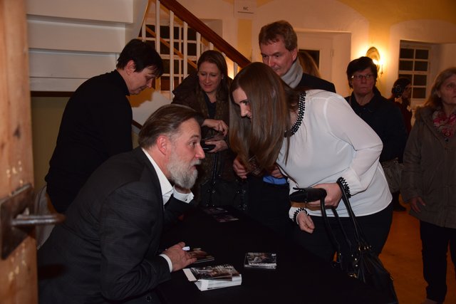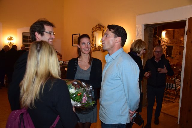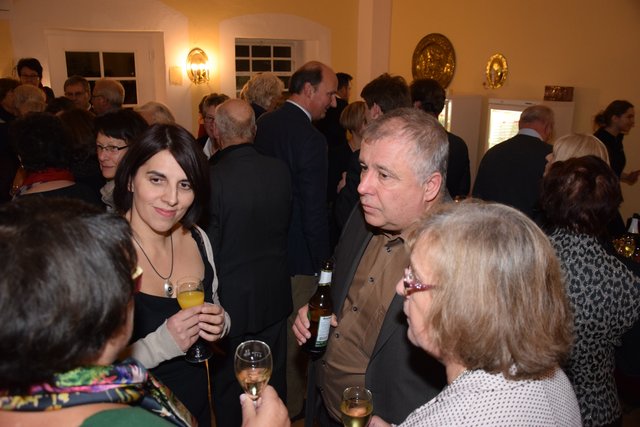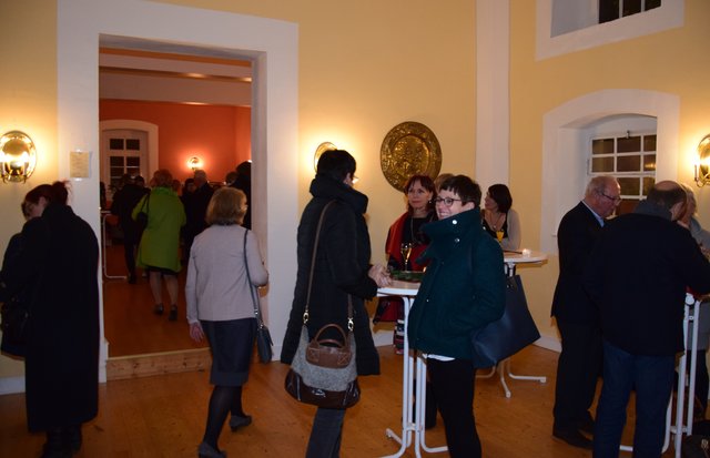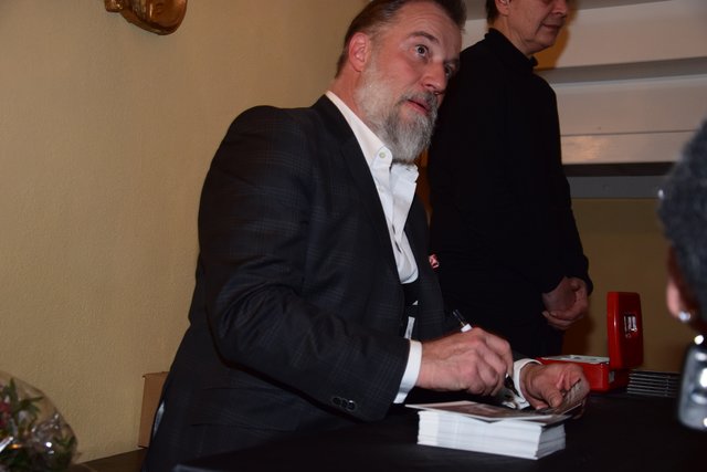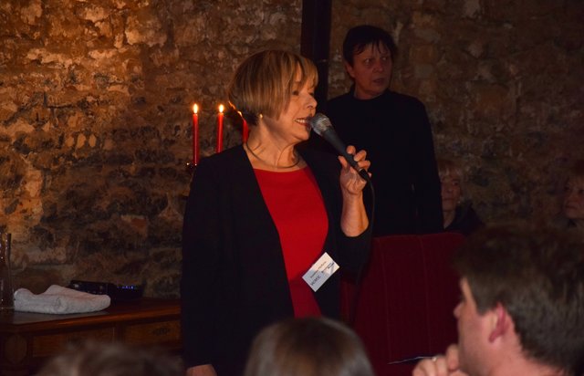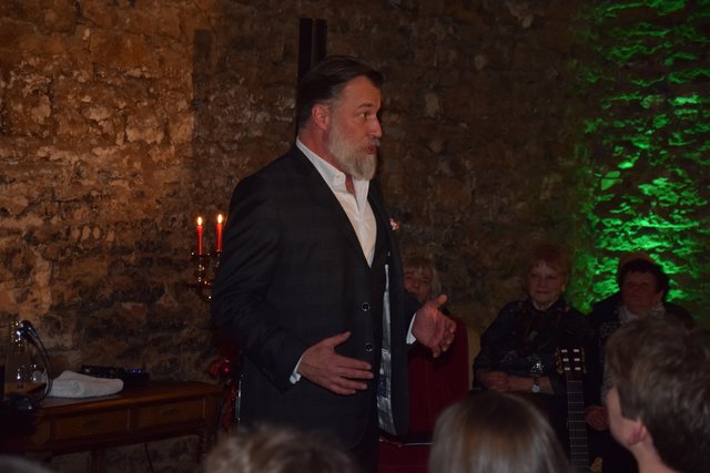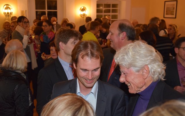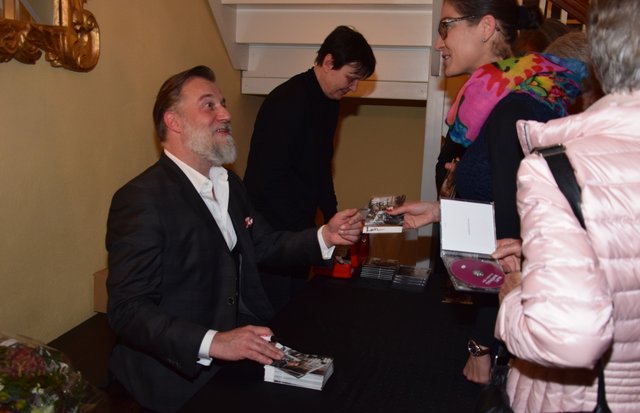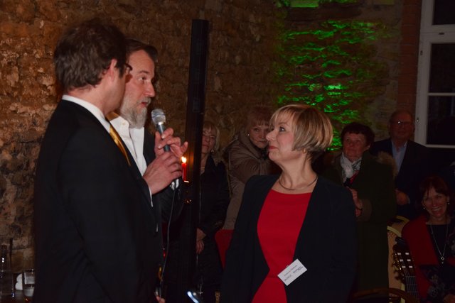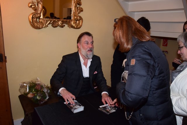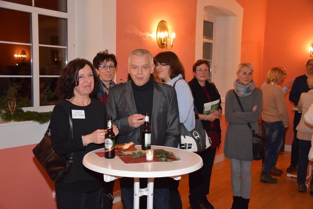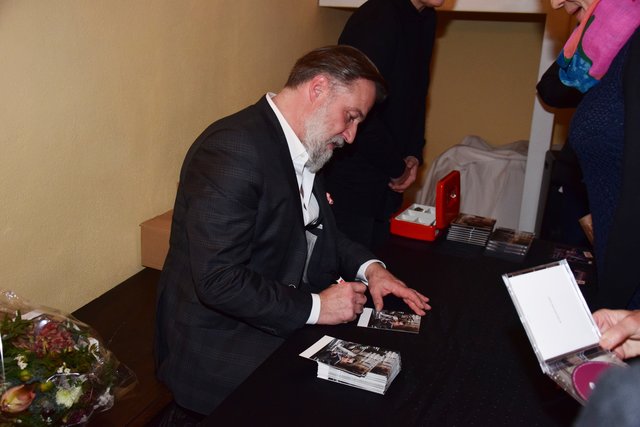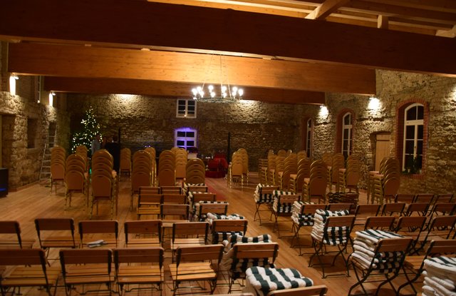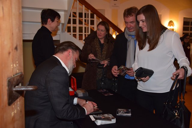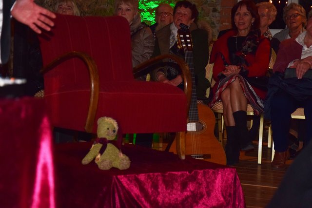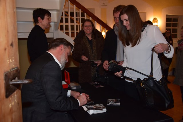 Doch es wurde nicht nur gesungen. Zwischen den einzelnen Liedern nahm Marshall auch immer wieder im roten Sessel auf der Bühne Platz, um aus mitgebrachten und eigens für den Abend ausgewählten Texten vorzulesen. Und bei den Texten setzte Marshall den roten Faden des Abends fort. Sie alle hatten einen Bezug zu Weihnachten oder Nächstenliebe, waren aber immer wieder unterschiedlich in ihrer Ausrichtung. Einige Texte regten zum Nachdenken, andere wiederum zum Schmunzeln an, etwa wenn der Kabarettist Klaus Peter Schreiner in seinem Gedicht „Der Weihnachtsbaum spricht” eine Tanne zu Wort kommen lässt. Am Ende des Konzertabends stand ein begeistertes Publikum minutenlang applaudierend im großen Saal des Gutshauses. Eine Zugabe war da natürlich obligatorisch und doch fiel sie, wie es zu diesem Abend passte, besinnlich, ergreifend und mitreißend aus.