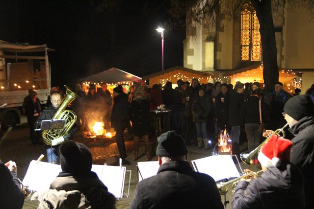 Zur Eröffnung trug der Kindergarten Schneckenhaus mit weihnachtlichen Gesängen bei. Nach der Lesung in der Kirche sorgte der Posaunenchor Nußbaum für die passende musikalische Begleitung.