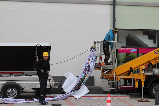 Weißhofer Galerie mit "Wimmelbild" verhüllt