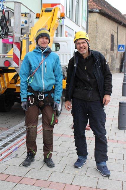 Bis zum 28. April sollen noch weitere Gebäude und Bauwerke verhüllt werden. Im Moment ist Zakher mit dem Verlauf seiner Arbeit äußerst zufrieden: Bisher gab es keine größeren Schwierigkeiten. Nun hoffe er darauf, dass die farbigen Akzente die Menschen aus und um Bretten genauso erfreuen, wie ihn selbst. Und auf diese Weise leistet der Industriekletterer seinen ganz eigenen Beitrag zum Jubiläumsjahr.