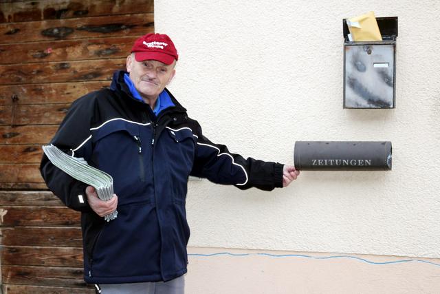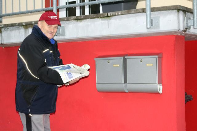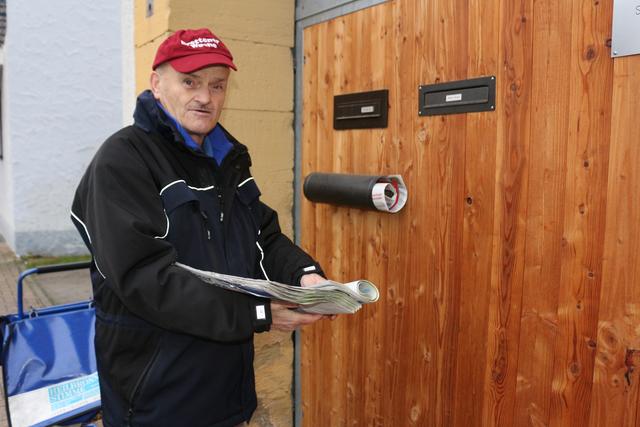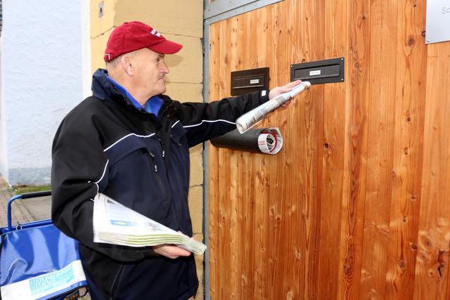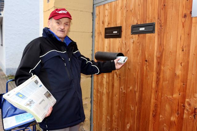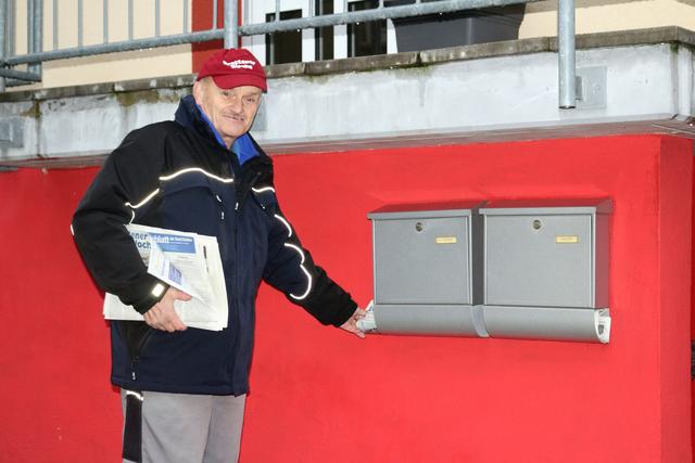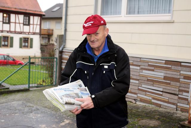 Bretten (hk) „Im Winter wird es schnell dunkel“, sagt Josef Reindl. Zügig läuft er die Brunnenstraße in Bauerbach entlang. Auf dem linken Arm trägt er einen Stapel Zeitungen, mit der rechten Hand legt er behutsam eine Zeitungsausgabe nach der anderen in die Postkästen. „Und im Dunklen wird es schwieriger, die Aufschriften auf den Briefkästen zu lesen. Aber bisher hat sich niemand beschwert“, sagt der 65-Jährige mit einem zufriedenen Lächeln. Reindl ist „springender“ Austräger der Brettener Woche, das heißt, er trägt immer dann aus, wenn ein anderer Austräger verhindert ist. „Aus diesem Grund habe ich auch keinen festen Bezirk, aber so war ich praktisch schon in jedem Gebiet, wo die Brettener Woche ausgetragen wird“, sagt Reindl. Und das Verbreitungsgebiet zieht sich von Bretten immerhin bis nach Kraichtal, Zaisenhausen, Sulzfeld, Kürnbach, Sternenfels, Maulbronn, Ötisheim, Kieselbronn, Eisingen, Königsbach-Stein, Walzbachtal, Gondelsheim, Heidelsheim, Helmsheim sowie nach Ober- und Untergrombach. Die Melanchthonstadt kennt Reindl aber wie seine Westentasche. „Ich habe über 30 Jahre lang bei der Stadt geschafft.“ Tüchtig wie er ist, wollte Reindl, als er in den verdienten Ruhestand ging, nicht Nichtstun. Und so kam es dazu, dass der pensionierte Maurer seit 2017 mit dafür verantwortlich ist, dass die Brettener Woche/Kraichgauer Bote pünktlich ihren Weg in die Briefkästen unserer Leser findet.
