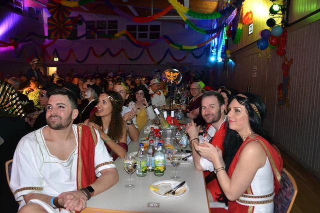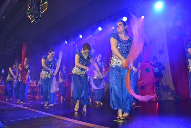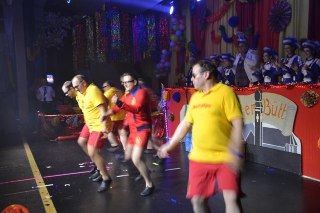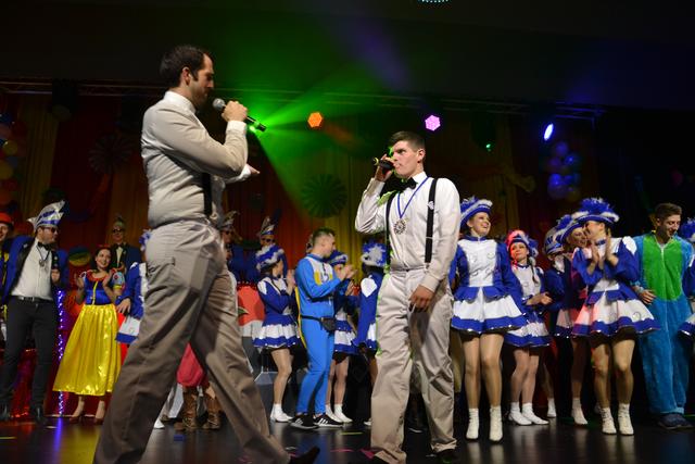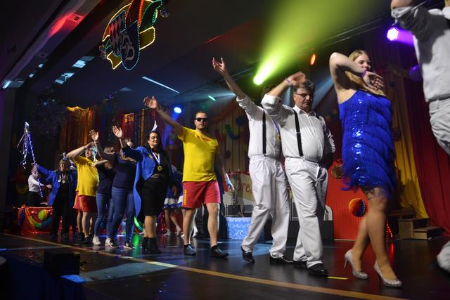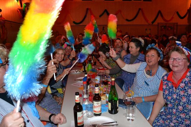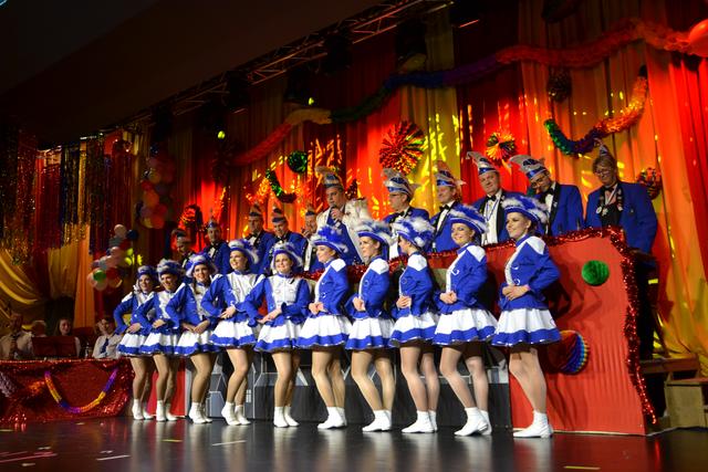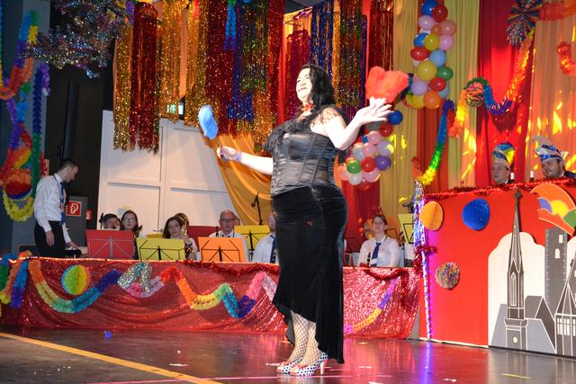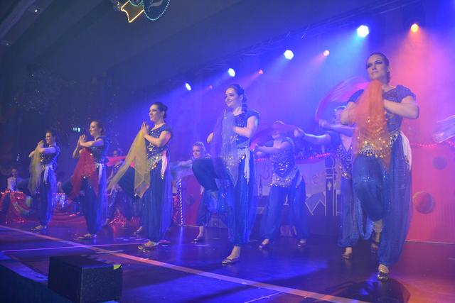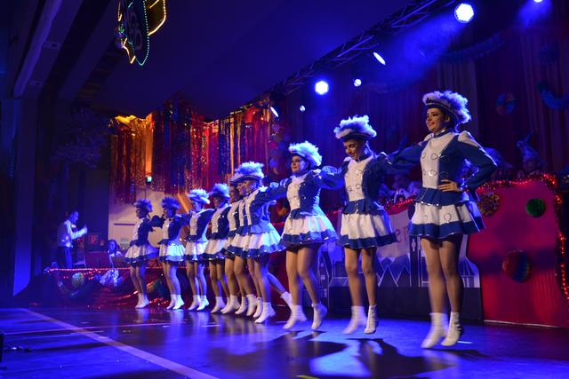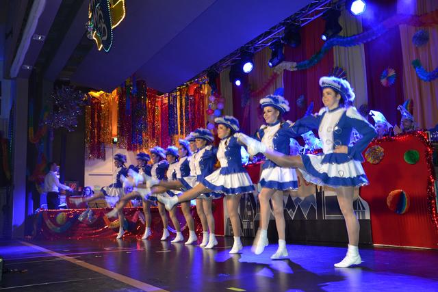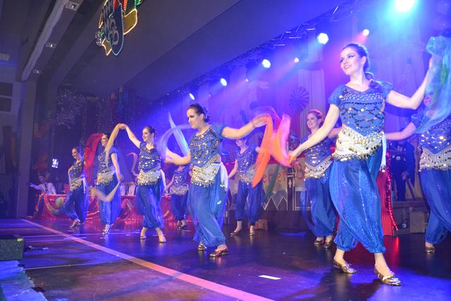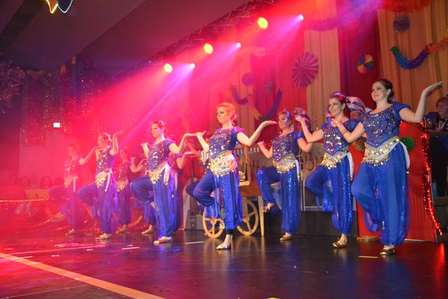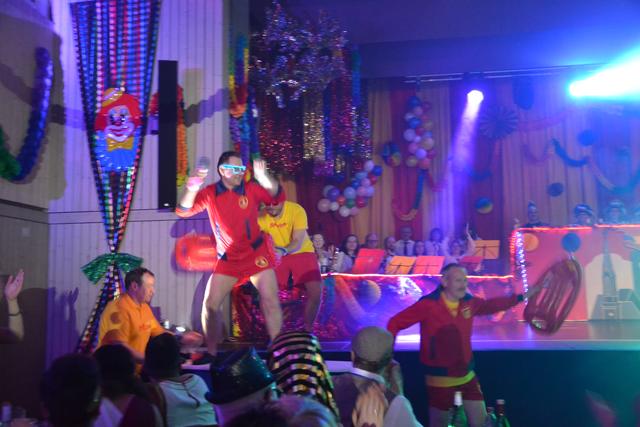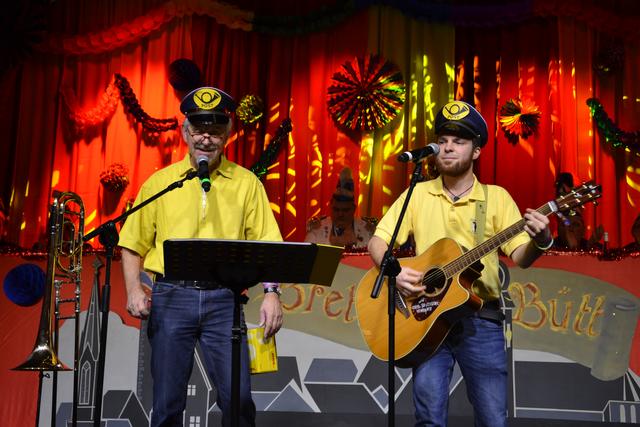 Die Neuzugänge Valle und Wolle von der Post alias Valentin Braun und Wolfgang Wagner besangen auf die Melodie von „Lady in Black“ das Debakel, in dem die deutsche Parteienlandschaft derzeit stecke, und bedachten die Probleme des Öffentlichen Personennahverkehrs mit dem Lied „Auf der Brettemer Eisabahne“. Die Brettener Hofsänger erfreuten mit mehrstimmigem Gesang und das Gardeballett ließ die Beine fliegen. Zauberhaft war vor allem ihr Auftritt in Orient- und Bollywood-Manier. Geradezu akrobatisch zeigten sich die Funkenmariechen Elisa Schnorr und Angelina Cosi-Montes. Als Umschulerin für eine Yoga-Schule der besonderen Art, plauderte Daniela Mößner als Catherine aus dem netzbestrumpften Nähkästchen. „Beeekanntmachungen“ ließ Günther Wolf verlautbaren, zum Beispiel was passiert, wenn man den Magen-Darm-kranken Hund und den Saugroboter allein zu Hause lässt.