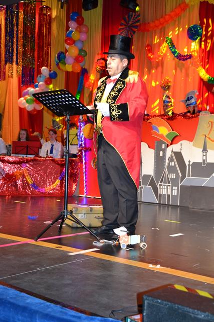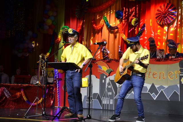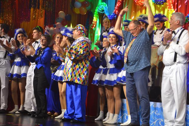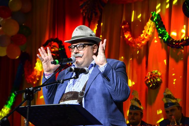 Die Kommunal- und die Weltpolitik nahm Pfarrer Harald-Mathias Maiba aufs Korn. Als Zirkusdirektor Don Lorenzo empfahl er Oberbürgermeister Martin Wolff, die Brettener Hundle wie den „Kläffer aus Ruit“ – gemeint war natürlich Ortsvorsteher Aaron Treut – am neuen Hundetrainingsort, dem großen Kreisverkehr nach Gölshausen, zu zähmen. Eindringlich warnte er vor Populisten und Rattenfängern, die Europa und die Demokratie bedrohten. In dieselbe Kerbe schlug Sitzungspräsident Bernd Neuschl, der betonte, das für Faschismus in der Bütt kein Platz sei.