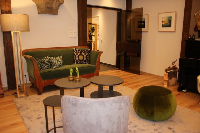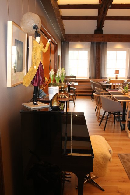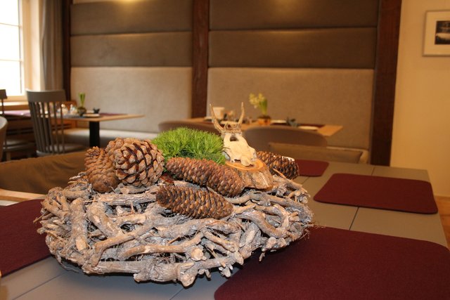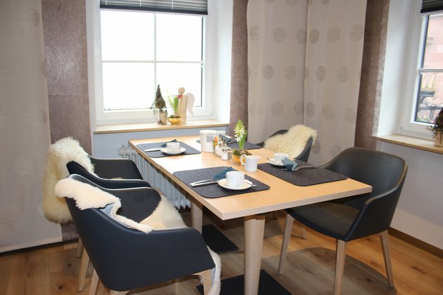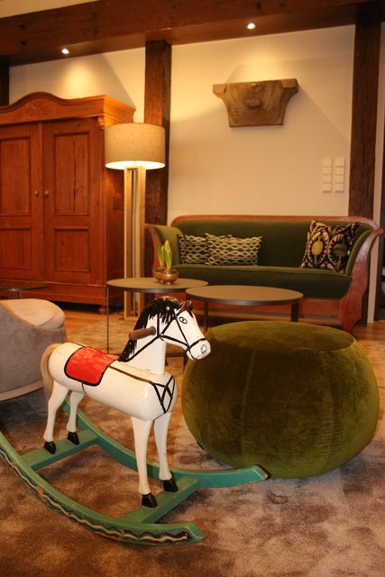 Bilder und Tapeten der Brettener Innenstadt erinnern die Gäste zudem an die Geschichtsträchtigkeit des Hauses. Doch nicht nur die Historie des Gebäudes, auch die Familiengeschichte ist stets präsent. So wurden zum Beispiel der alte „Metzeltisch“ und das Schaukelpferd des Großvaters von Sabine Weishäupl sowie die Couch ihrer Uroma in die Innengestaltung integriert.