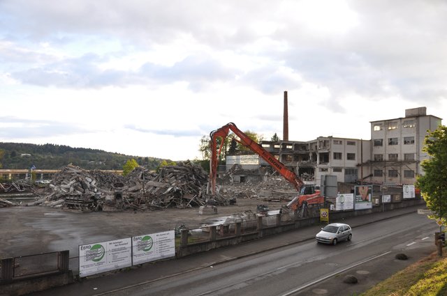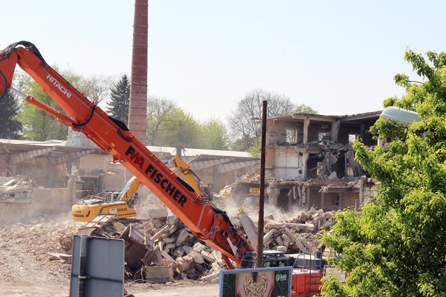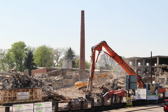 Sobald das Gelände freigeräumt und neu eingeebnet ist, sollen laut Johan Busic die Erschließungsarbeiten beginnen, sprich die Verlegung von Kanalisationsrohren und Versorgungsleitungen sowie der Bau von Straßen und Wegen. Und was ist mit dem 30 Meter hohen Kamin? Bleibt er wie geplant erhalten? „Eine spannende Frage“, so Johan Busic. „Wir wollen den Kamin nach wie vor als Wahrzeichen erhalten, aber wir wissen noch nicht, wie er auf die mit den Abrissarbeiten verbundenen Erschütterungen reagieren wird.“ Ein zuvor von Harsch in Auftrag gegebenes Gutachten zur Standsicherheit des Kamins sei jedenfalls positiv ausgefallen.