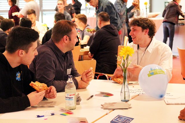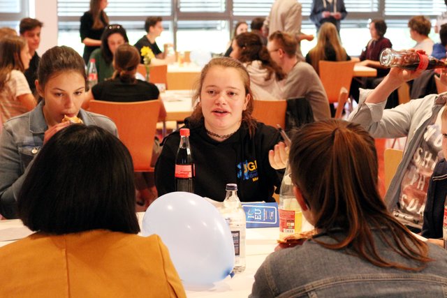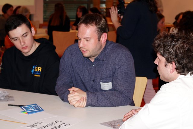 Es folgte der spannende Teil des Abends: In je siebenminütigen Runden rotierten die Vertreter von AfD, Aufbruch Bretten, CDU, die aktiven, FDP, Grünen, FWV und SPD von Tisch zu Tisch und tauschten sich intensiv über Themen wie Digitalisierung, Mobilität, Umweltschutz, jugendfreundliches Wohnen oder Schule und Ausbildung aus. Heidi Leins von der Freien Wählervereinigung (FWV) erkundigte sich, ob die Jugendlichen zufrieden seien mit dem Breitbandausbau. „Es tut sich was, aber es dauert sehr lange“ lautete die Antwort eines Schülers. Leins nickte verständnisvoll, erklärte aber auch, dass es von Anfang an nicht leicht gewesen war, den Weg in die digitale Zukunft zu ebnen. Sie erinnerte an den „Widerstand im Gemeinderat“ und berichtete davon, wie die FWV in Diedelsheim „alle Straßen abgeklappert“ habe, um die Menschen über Glasfaser zu informieren. Mehrmals kam seitens der Jugendlichen der Wunsch zum Ausdruck, dass sie sich über freies, schnelles und zuverlässiges WLAN an öffentlichen Plätzen, wie zum Beispiel am Bahnhof freuen würden.