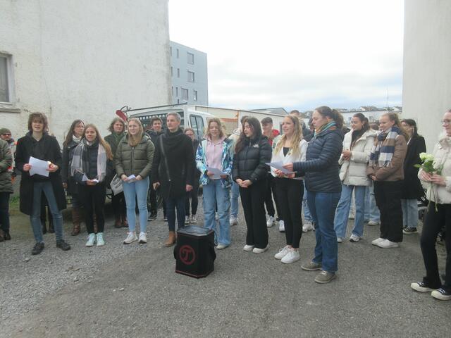 Schülerinnen und Schüler legten in kurzen Statements dar, es sei wichtig die Erinnerung an die furchtbaren Taten des Nationalsozialismus aufrechtzuerhalten, um dem weiter bestehenden Antisemitismus, Rassismus und jeder Form von Diskriminierung die Stirn zu bieten. Ein gemeinsam gesungenes „Hevenu shalom alechem“ bildete den Abschluss der Veranstaltung.