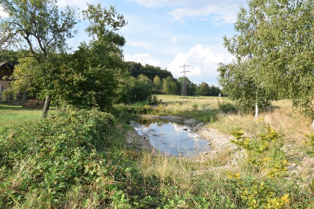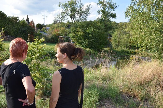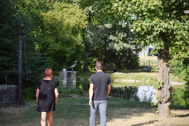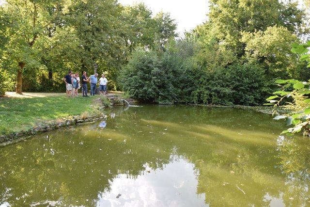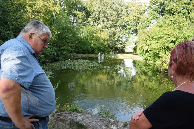 Ein besonderes Ärgernis ist nicht nur für Kremser die illegale Mülldeponie am Bahndamm. Um die Zufahrt zu versperren, wurden jetzt Haushaltsmittel für einen hohen Zaun beantragt. Zu Fuß ging es sodann zum Dürrenbüchiger Teich, dessen Lecks das Pumpenhäuschen unter Wasser gesetzt haben. Im September wird er abgepumpt, entschlammt und neu abgedichtet. Über eine Grabenbrücke, wo ausführlich eine Stelle begutachtet wurde, an der sich kürzlich ein Bürger sein Auto ruiniert hat, führte der Weg zu einem kleinen Feuchtbiotop, das als Ausgleich für das – inzwischen vollbelegte - Neubaugebiet angelegt wurde. In dem Tümpel hat die Kreuzkröte eine Heimat gefunden. Darüber hinaus gibt es laut Ortschaftsrätin Elke Schäfer noch weitere Hecken- und Totholzbiotope.