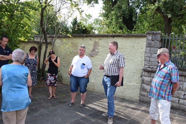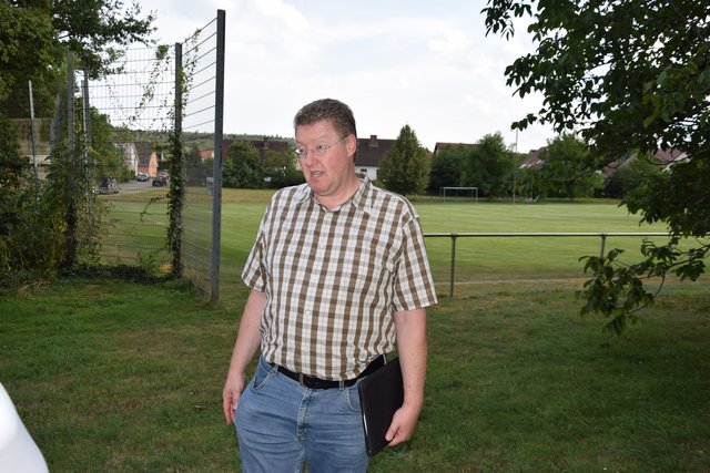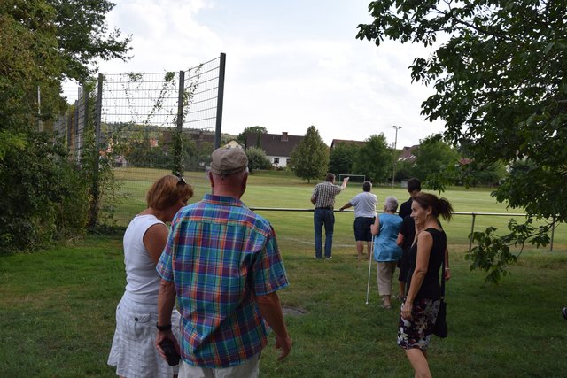 Vorletzte Station war der Sportplatz, dessen Erneuerung der zweite große Wunsch des Ortschaftsrats ist. Das Spielfeld weist nicht nur ein erhebliches Gefälle auf, sondern die Drainage ist auch überaltert, was laut Frank Kremser die Unebenheiten verstärkt und die Verletzungsgefahr erhöht. Wolfgang Six hat immerhin die Zusage des OB, dass der Sportplatz Vorrang hat. Auch Stadtrat Schlotterbeck bekräftigte: „Für den Sportplatz muss was in den Haushalt eingestellt werden.“ Ob er dann 2019 saniert werde, sei noch mal eine andere Frage.