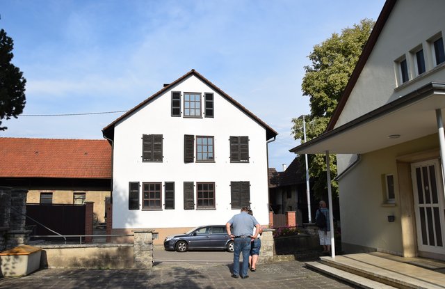 - Ortstermin der SPD-Fraktion in Dürrenbüchig: Ein Umbau des alten Kindergartens soll einen barrierefreien Zugang zur benachbarten Ortsverwaltung (im Hintergrund mit Türmchen) ermöglichen. Foto: ch