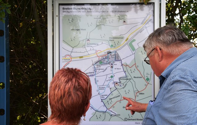 BRETTEN-DÜRRENBÜCHIG (ch) „Die kleineren Ortschaften sind immer aktiver“, meinte Ortsvorsteher Wolfgang Six zu Beginn des Rundgangs und schickte augenzwinkernd hinterher: „Wir sind ja auch ein bisschen die Stiefkinder.“ Was in der Runde prompt ein großes Hallo auslöste und die SPD-Fraktionsvorsitzende Renate Knauss zu einem Seitenhieb auf die anderen Ratsfraktionen veranlasste: „Wir haben in der Mehrheit des Gemeinderats einen Spar-Gemeinderat.“ Nachdem Wolfgang Six die Dürrenbüchiger „Aushängeschilder“, darunter Dorfgemeinschaftshaus mit Kindergarten, neues Feuerwehrhaus mit Grenzsteinpark, Biotop-Vernetzung und Streuobstpflege, aufgelistet hatte, präsentierte er das Projekt barrierefreie Ortsverwaltung.