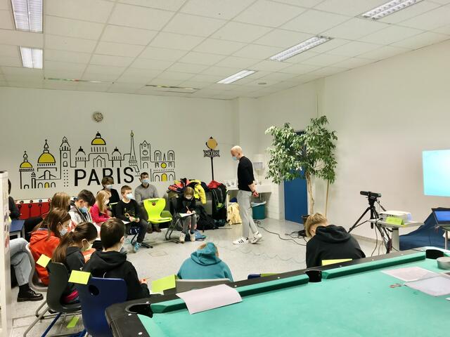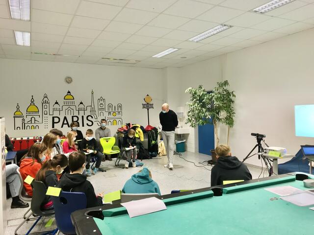 Max Pauli, Grundschullehramts-Student im ersten Master-Semester, lässt sich an diesem späten Nachmittag von den JPH-Schülern ihre Welt zeigen. Einfühlsam geht er mit den Kindern in den Diskurs – auf Augenhöhe und nie mit irgendwelchen Zwängen. „Wollt ihr mal von einem konkreten Beispiel erzählen?“, fragt der 23-Jährige in die Runde, als es um das luzide Träumen ging. Dabei handelt es sich um einen Traum, in dem der Träumer sich bewusst ist, dass er träumt. Eine kurze Stille legt sich über den Raum. Student Max drängt aber nicht krampfhaft auf Antworten. Dann kommt doch noch eine Meldung per Handzeichen: „Das hatte ich schon ein paar Mal“, sagt ein Schüler. Dabei habe er wie ein Außenstehender über die Schulter einer anderen Person den Traum erlebt. „Ich habe gemerkt, dass ich träume und konnte die Kontrolle übernehmen“, berichtet er. Student Max erklärt, was ein Alptraum ist, wie Träume entstehen und was während des Träumens mit den Eindrücken des Tages im Gehirn passiert. „Es ist komisch, dass man sich gar nicht an seine Träume erinnern kann, oder?“, fragt Max Pauli und ergänzt: „Aber das kann man üben, indem man ein Traumtagebuch führt. Dadurch erinnert man sich immer besser an seine Träume.“ Ein Schüler fügt an, dass man doch auch das luzide Träumen „üben“ könne. Und was es mit Schlafparalysen auf sich habe, will ein anderer wissen, worauf Max Pauli ehrlich zugeben muss, dass er darüber nicht genug informiert sei, um eine gute Antwort zu geben.