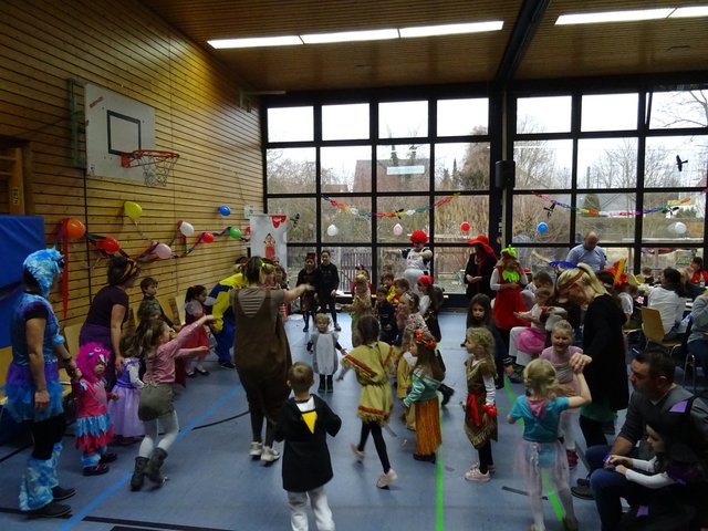 Buntes Treiben, Tanzen und Feiern herrschte in der Gymnastikhalle am Nachmittag vom Samstag, 10.02.2018. Gesichtet wurden Piraten, Cowboys, Indianer, Hexen, Teufel in allen Größen, Farben und Formen. Auch Tiere haben sich unter die Menge gemischt – als tanzender Affe oder auch als Luftballongiraffe oder Marienkäfer am Arm. Dafür großen Dank an die beiden Luftballonkünstler!