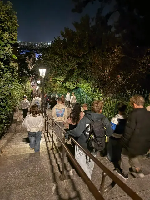 Gleich zu Beginn ermöglichte eine Bootsfahrt auf der Seine einen ersten, stimmungsvollen Blick auf die ikonischen Wahrzeichen der Stadt. Der Aufstieg auf den Arc de Triomphe bot einen imposanten Rundblick über das pulsierende Paris, bevor die Schülerinnen und Schüler die kunstvolle Logistik der Pariser Metro auf dem Rückweg meisterten. In der Jugendherberge angekommen, blieb nur wenig Zeit zum Verschnaufen – denn am Abend lockte der Trocadéro-Platz mit einem spektakulären Blick auf den funkelnden Eiffelturm zur Lichtershow.
