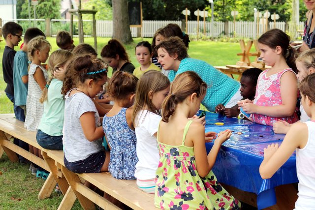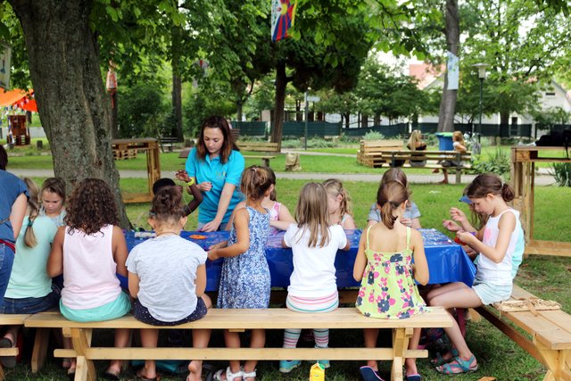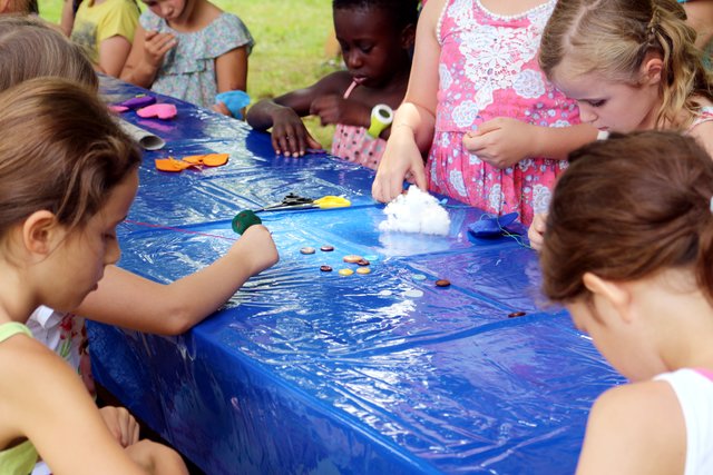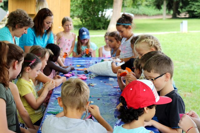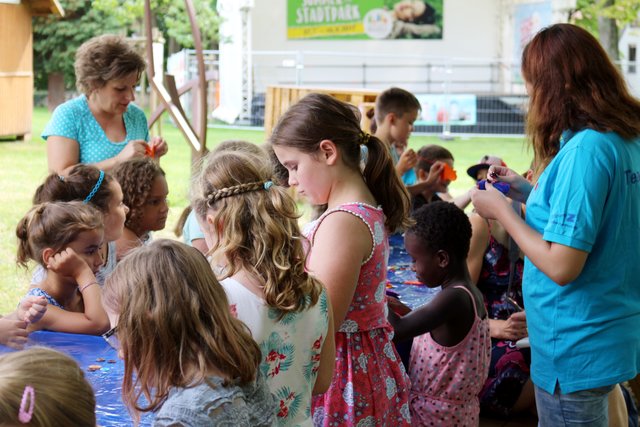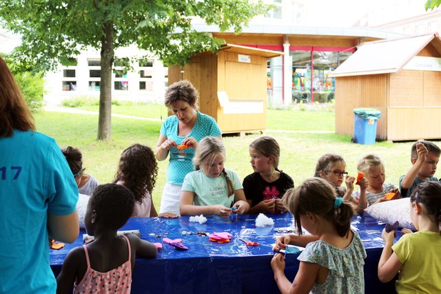 Sommer im Park: Kinder basteln sommerliche Anhänger