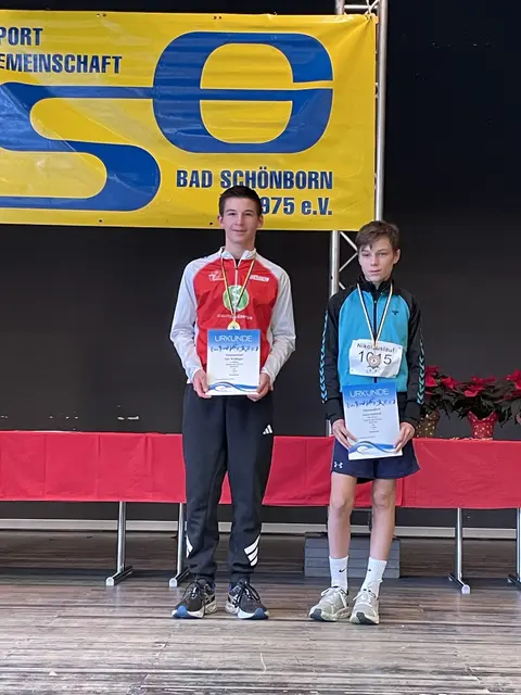 Nils und Jula hatten mit dem 5 km Lauf noch nicht genug und starteten 1h später noch im Schülerlauf über 2200m. Hier konnten beide nochmals zeigen, dass sie schon zum Jahresende wieder in einer sehr guten Form sind. In einem harten Zweikampf gegen einen 800 m Spezialisten gewann Nils nach überragendem Zielsprint auch diesen Wettkampf. Jula konnte das Rennen ebenfalls durch einen Zielsprint für sich entscheiden und setzte sich so gegen die starke Konkurrenz durch.
