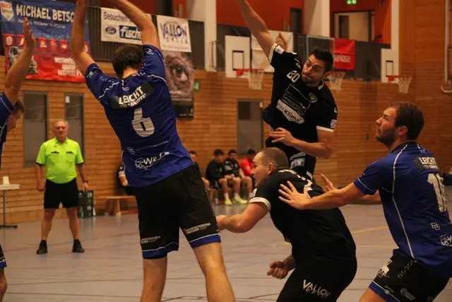 Nach einem frühen Gegentor eröffnete Benedikt Doll aus dem Rückraum den Torreigen der Hausherren. Kurz darauf sorgte Patrick Hecker für eine Szene, über die in der Grüner-Halle noch länger gesprochen wurde: Sein Siebenmeter wurde zunächst vom Torhüter abgewehrt, der Ball stieg senkrecht in die Luft, fiel dann hinter dem Keeper wieder herunter und trudelte schließlich über die Linie – das 2:1, ein Sinnbild für den unbändigen Willen der SG, jeden Ball für sich zu gewinnen.
