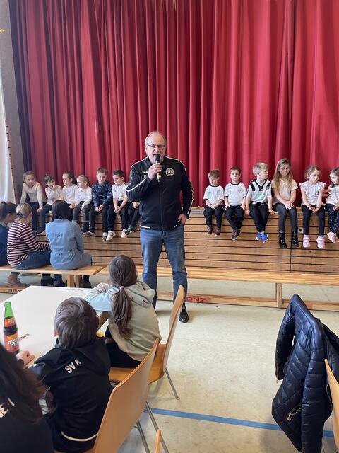 „Nach zweijähriger Corona-bedingter Pause freut es mich, heute wieder alle Nachwuchssportler des SVB zur Jugendwinterfeier begrüßen zu dürfen“, eröffnete SVB-Vorstand Wolfgang Lohkemper die Veranstaltungen. Die Bürgerwaldhalle war durch die Mannschaften von den Bambinis bis zu den C-Juniorinnen und C-Junioren sowie den Kinderturngruppen und deren Familien und Freunden gut gefüllt. Ebenso freuten sich der Förderkreisvorsitzende Matthias Koch und der SVB-Jugendleiter Dirk Baberske in ihren Begrüßungen über das zahlreiche Erscheinen. Während Matthias Koch die Bedeutung des Förderkreises Fußballjugend für den Nachwuchs beim SVB hervorhob, nutzte Dirk Baberske die Gelegenheit um den frisch gewählten stellvertretenden Jugendleiter Sven Beisel vorzustellen.