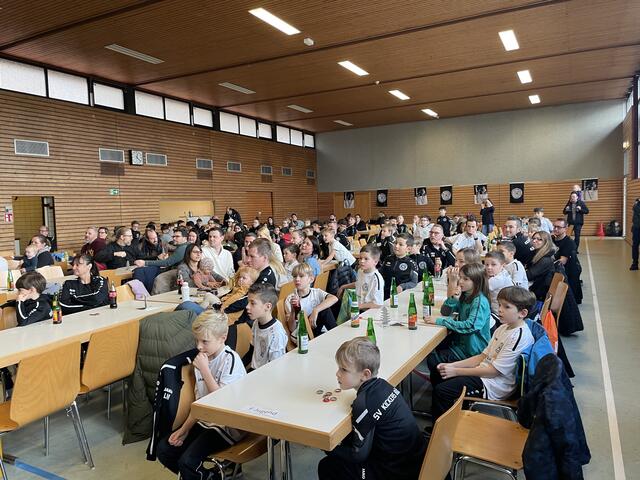 Wenngleich die Vereinsfarben Schwarz und Weiß sind, so zeigte der SVB an diesem Nachmittag doch ein buntes Programm, bei welchem sämtliche Beiträge jeweils mit viel Applaus bedacht wurden. Bei diesen Anstrengungen war es nicht verwunderlich, dass das Küchenteam einen großen Absatz für Pommes und Chicken-Nuggets verzeichnete. Kostenlos – durch den Förderkreis Fußballjugend gesponsert - konnte sich der Nachwuchs stärken. Nach über vier Stunden abwechslungsreichem und kurzweiligem Programm und einem Gruppenbild mit dem SVB-Nachwuchs bedankte sich Jugendleiter Baberske bei allen Mitwirkenden für den gelungenen Nachmittag.