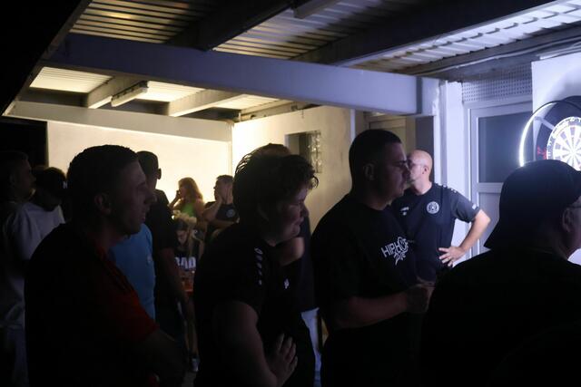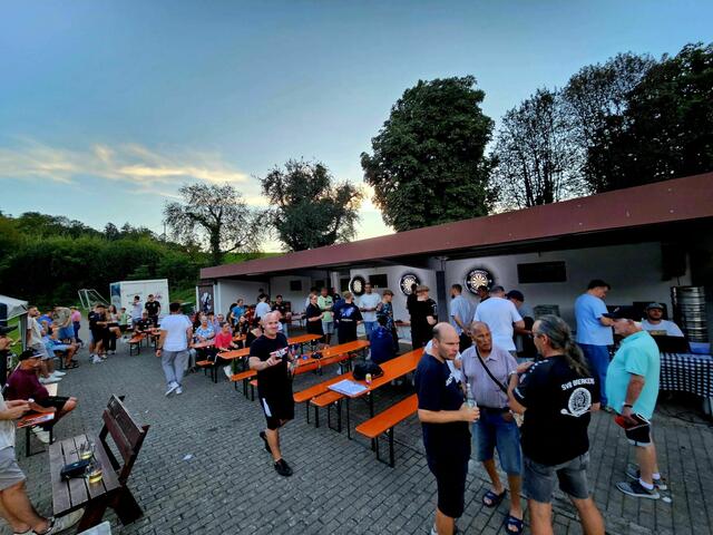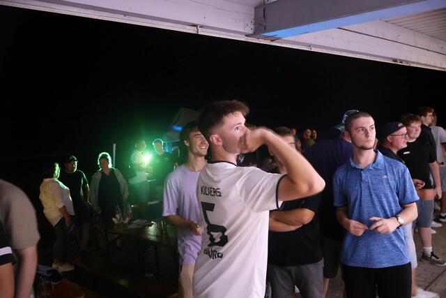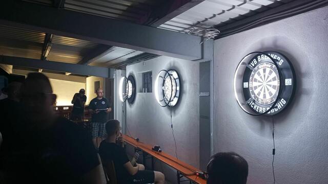 Bretten-Büchig (07.09.2024 ur) Bis weit nach Mitternacht konnten sich die Zuschauer und Teilnehmer an spannenden und kurzweiligen Dartspielen erfreuen, bis der Turniersieger im 1. Open Air-Dartturnier des SV Kickers Büchig feststand. Die noch junge SVB-Dartgruppe SVB Breakers hatte im Rahmen des Sportfestes zu einem Dartturnier eingeladen, welches planmäßig auf der Terrasse vor dem vereinseigenen Clubhaus ausgetragen werden konnte. Aus den insgesamt zwölf Mannschaften konnte das „Random Team“ als Turniersieger neben den Zweit- und Drittplatzierten mit einem Pokal und Preis belohnt werden.