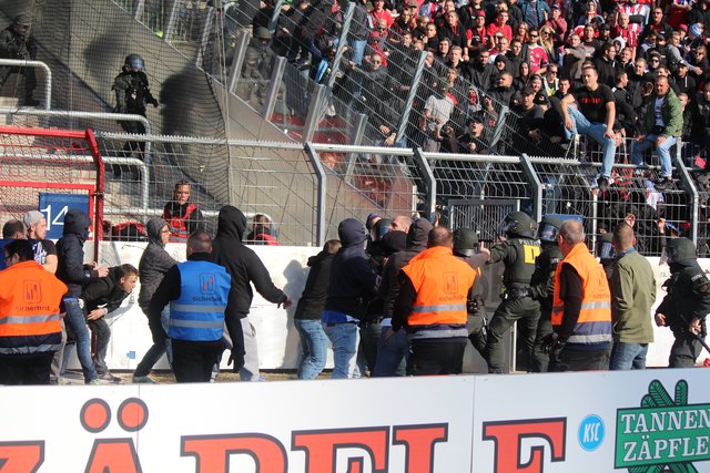 - Zu schweren Ausschreitungen kam es beim Spiel des Karlsruher SC gegen den 1. FC Nürnberg.
