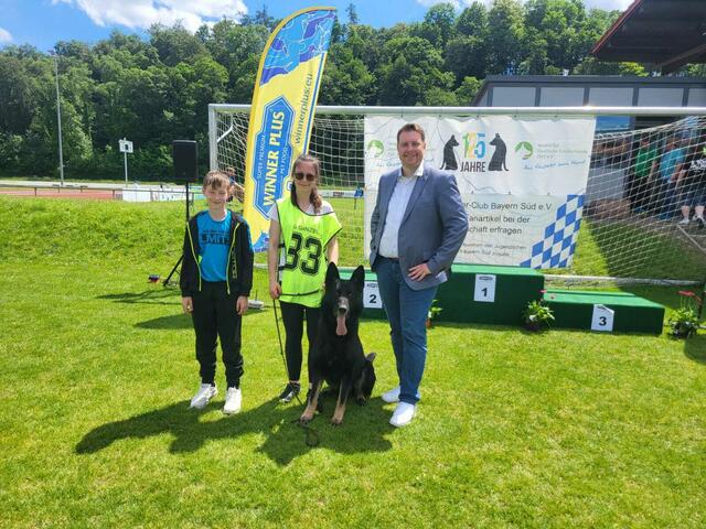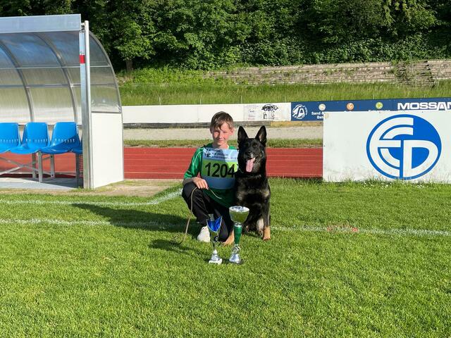 Jonathan Rath erzielte mit der Hündin Ulla in der Prüfungsstufe IGP 2 den zweiten Platz der Jugendlichen. Von 100 möglichen Punkten erzielte er in der Sparte A 95 / B 80 / C 92 Punkte ein sehr gutes Ergebnis von 267 Punkten.