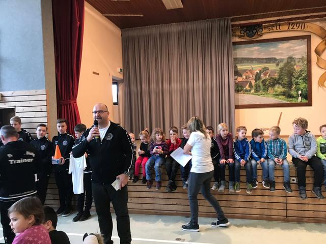 Der 2. Vorsitzende des Förderkreises Axel Braust erläuterte währenddessen den Eltern die Aufgaben des Förderkreises. Dieser unterstützt mit seinen Mitgliedsbeiträgen und den Einnahmen den Sportbetrieb im Jugendbereich des SVB. Allein in der vergangenen Saison konnten hierdurch über achtzig Fußbälle, neue Tore für den Jugendfußball und anderes Sportgerät angeschafft werden. Diese besonderen Leistungen wurden mit viel Applaus bedacht. Diesen nutzte Braust aus, um Werbung in eigener Sache zu machen und die Eltern zum Beitritt der Kinder in den Förderkreis zu ermuntern: „100 % ihrer Mitgliedsbeiträge fließen in die Jugendarbeit ihrer Kinder!“