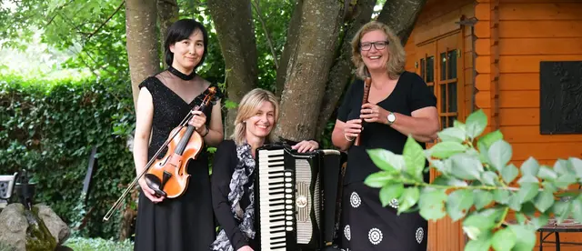 Das Trio Sou-Val-Ka mit den Musikerinnen Susanne Jaggy, Waltraud Epple-Holom und Kaoru Minimiguchi präsentiert ein musikalisches Spektrum, das sich nicht so leicht in eine musikalische Schublade stecken lässt: Früh- und Spätbarock, Folkloristisches aus Irland und Bulgarien oder Rumänien, Tangos und Zeitgenössisches mit Blockflöte, Akkordeon und Violine in Kombination hört man eher selten im kammermusikalischen Rahmen. In der Verschmelzung dieser drei Instrumente findet der Zuhörer eine nicht alltägliche Mischung vor, die aber gerade dadurch ihren besonderen Reiz hat.br / br / Die drei Musikerinnen sind als Musikschulleiterin und als Pädagoginnen an verschiedenen Musikschulen tätig und künstlerisch in verschiedenen kammermusikalischen Ensembles zu erleben.