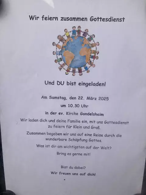Wir laden dich und deine Familie ein mit uns Gottesdienst zu feiern für Klein und Groß.
