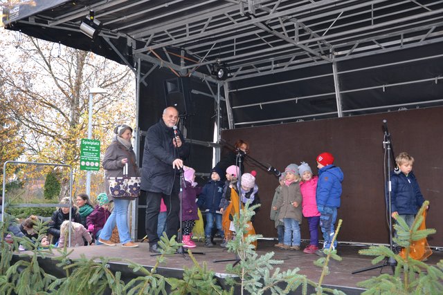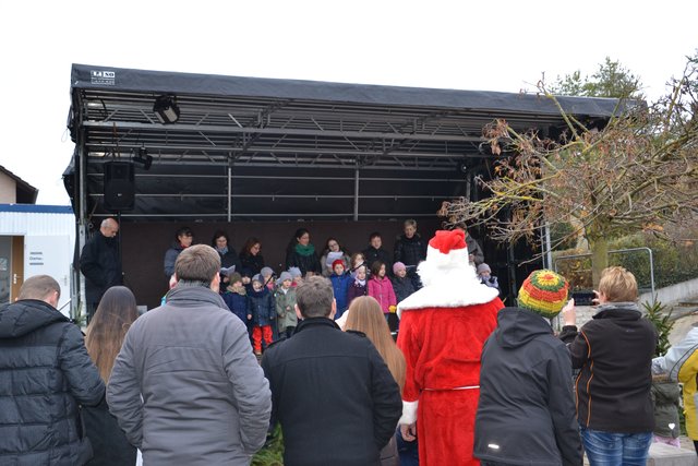 Auf der Bühne sorgten der Grundschulchor und die Kinder der drei Flehinger Kindergärten sowie der Musikverein und Arndt Stiegler aus Großvillars für die musikalische Umrahmung, moderiert von Ortsvorsteher Klaus Hilpp. Der Nikolaus war unterwegs und beglückte die Kinder nach ihrem Auftritt mit einem Geschenk.