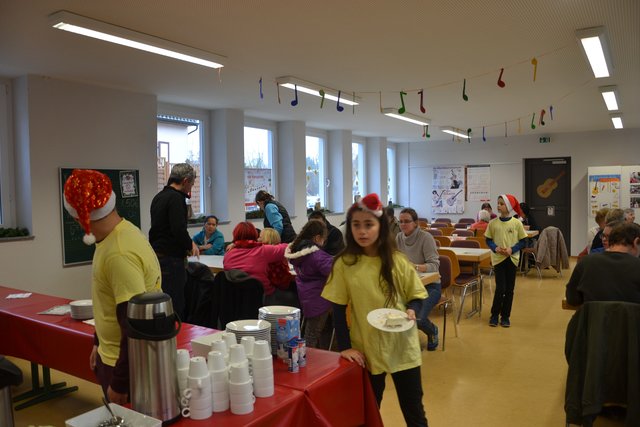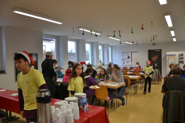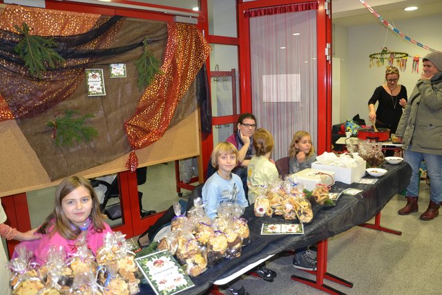 Im Schulhaus konnten sich die Besucher mit Geschenken und Dekorationen für Weihnachten eindecken. Neben Kaffee und Kuchen boten die Grundschulkinder auch gebrannte Mandeln, Magenbrot und Plätzle, alles selbst gemacht, zum Verkauf an.