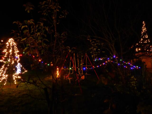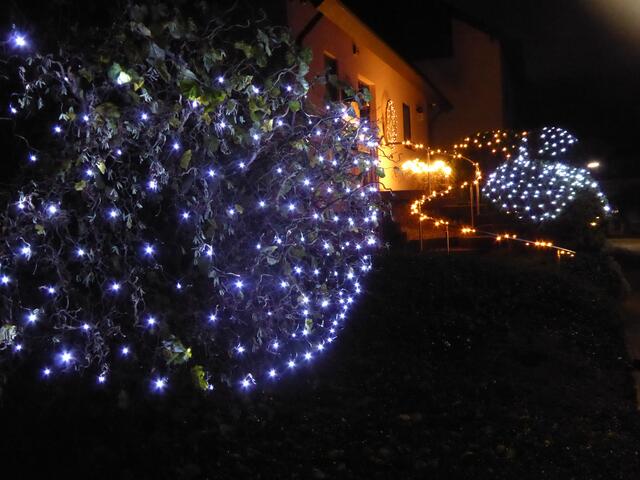 Wer dieser Tage am Abend unterwegs ist, kann leicht ein vielfältiges Leuchten entdecken. Zur Adventszeit und je näher Weihnachten rückt, wird draußen und drinnen die Lichterpracht immer unübersehbarer. Weihnachtsbäume, öffentliche Räume, Weihnachtsmärkte und auch private Anwesen verwandeln sich in ein wahres Lichtermeer. Wem so etwas gefällt, muss sich nur nach Einbruch der Dunkelheit zu einem kleinen Rundgang in seinem Wohnort aufmachen. So auch am Beispiel von Wössingen, wo viele private Anwesen, Gaststätten, Geschäfte, Rathaus und Kirchen durch kreativen Lichterschmuck dekoriert sind. Eine kleine Auswahl an Bildern zeigt die Vielfalt der Gestaltung (wb):