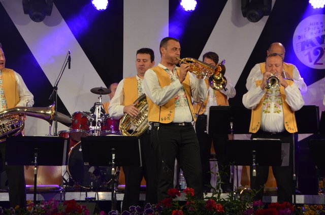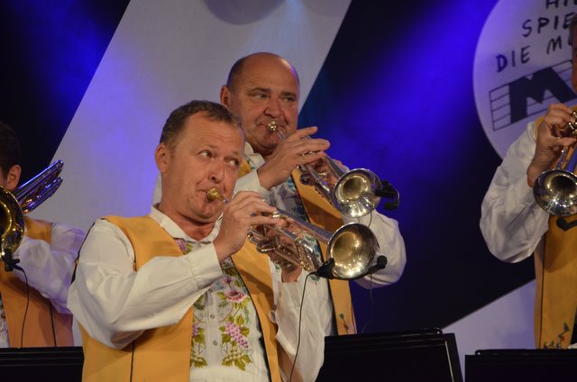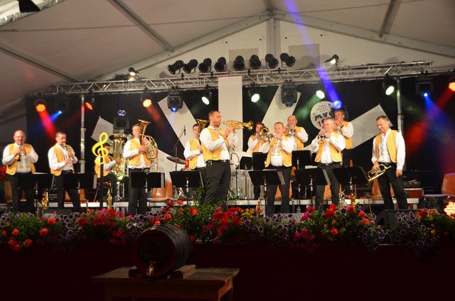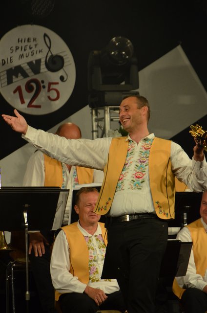 Es war ein gelungener Festauftakt: DJ Josh Kochhann legte bei der SWR3-Elch-Party zum 125jährigen Jubiläum des Musikvereins Eintracht Obergrombach e.V. am vergangenen Freitag Hits der 90er auf. „Wir wollten ein Fest für Obergrombach machen, mit einem vielfältigen Programm für jeden Geschmack,“ erklärt Rolf Janzer, 1. Vorstand des Musikvereines. „Musik ist ein Hobby, dass man von klein auf bis ins hohe Alter ausüben kann. Es verbindet Generationen, das macht auch unseren Verein so besonders.“ Die eigene Vielfalt an Musikstücken, die im Verein gespielt werden, veranlasste das Fest-Komitee dazu, ein so abwechslungsreiches Programm auf die Beine zu stellen. Nach einem Warm-Up mit dem Musikverein Neuthard und einem feierlichen Fassanstich mit Schirmherr Eckbert von Bohlen und Halbach, wie auch Ortsvorsteher Jens Skibbe, wurde am Samstagabend ab 21 Uhr die Bühne frei gemacht für den bekannten Trompeter und gebürtigen Slowaken Vlado Kumpan. „Einige Musiker aus dem Verein hatten Kumpans Programm schon gesehen und brachten die Idee in die Festplanung ein. Und so entschieden wir uns, diesen hervorragenden Musiker nach Obergrombach zu holen,“ so Janzer. Bereits in der frühesten Kindheit erhielt das Ausnahmetalent Kumpan Trompetenunterricht und fand so zu seiner heutigen Passion. Seit über 15 Jahren ist er mit seinen virtuosen „Kumpanen“ auf europäischem Spitzenniveau unterwegs und legt auf Konzertreisen tausende von Kilometern zurück. Mit bereits 14 Jahren begann er sein Studium am Konservatorium in Bratislava und ging nach seinem Abschluss an die dortige Musikhochschule, um ein weiteres Studium zu absolvieren. Heute blickt er stolz auf zahlreiche Erfolge und bereits sieben Solo-CDs zurück. Auch in Obergrombach hatte er von seiner neuesten CD „Mährischer Gruß“ verschiedene Stücke mitgebracht: Trumpet Star, Patricks Polka, Jindriska, Kerova und Mama’s Stern – Ob Walzer oder Polka, bei seiner spritzigen und leichten Musik war eine ausgelassene Stimmung im Festzelt. Seit 2001 ist er mit seinem ebenso talentierten Orchester unterwegs. Die fröhlichen Musiker brachten ab der ersten Sekunde Lebensfreude und Humor mit auf die Bühne. „Man muss uns nicht kennen, man muss uns erleben“, beschreibt der Moderator die 13 Musiker. Kumpan gilt heute als Vorbild in der Blasmusikszene und steht dabei für eine virtuose Einzigartigkeit an der Trompete. Selbst die höchsten Töne scheinen für diesen außergewöhnlichen Musiker ein Einfaches zu sein. Nach drei Stunden Programm ließen die Gäste keinen Zweifel daran, dass dies ein eindrucksvoller Abend war. „Unser Dank gilt allen, die dazu beigetragen haben, dass unser Fest so gelingt. Auch an die anderen Ortsvereine, die sich in besonderer Weise an unserem Fest engagiert und mitgeholfen haben, ein herzliches Dankeschön,“ schließt Janzer den Abend.