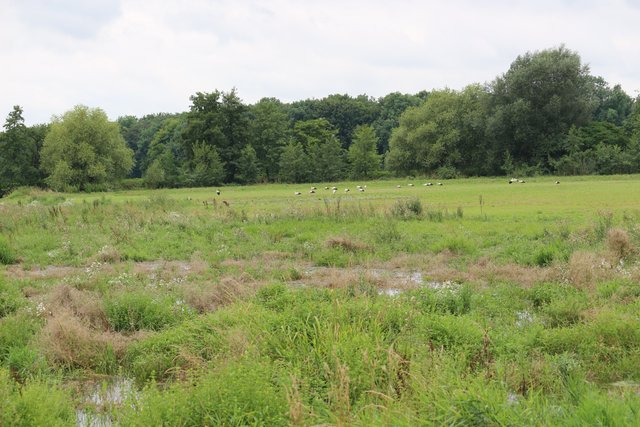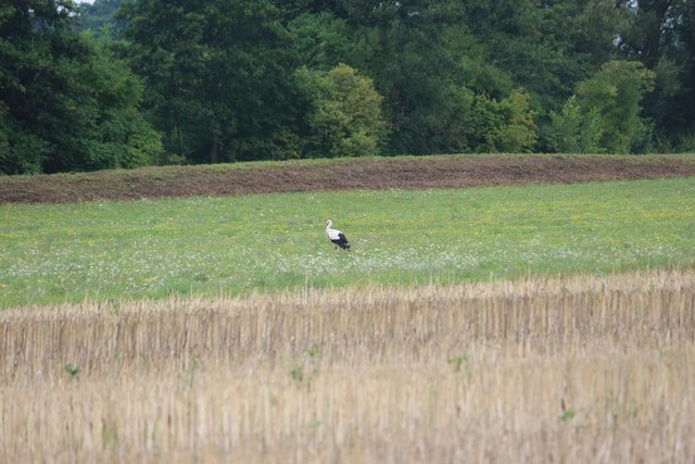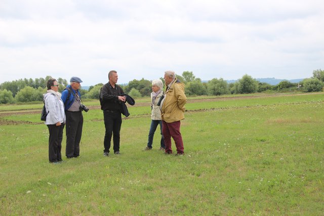 Bruchsal/Hambrücken (wh) Pünktlich zur ersten Ferienaktion der Brettener Woche in diesem Jahr hörte der Regen auf: Man traf sich auf den Saalbachwiesen bei Bruchsal, um den Störchen, die sich bald gen Süden aufmachen, einen guten Flug zu wünschen. Geführt wurde die Gruppe von Franz Debatin, erster Vorsitzender des NABU Hambrücken, der sich seit Jahren für den Erhalt der Landschaft und des Lebensraumes auf den Saalbachwiesen einsetzt.